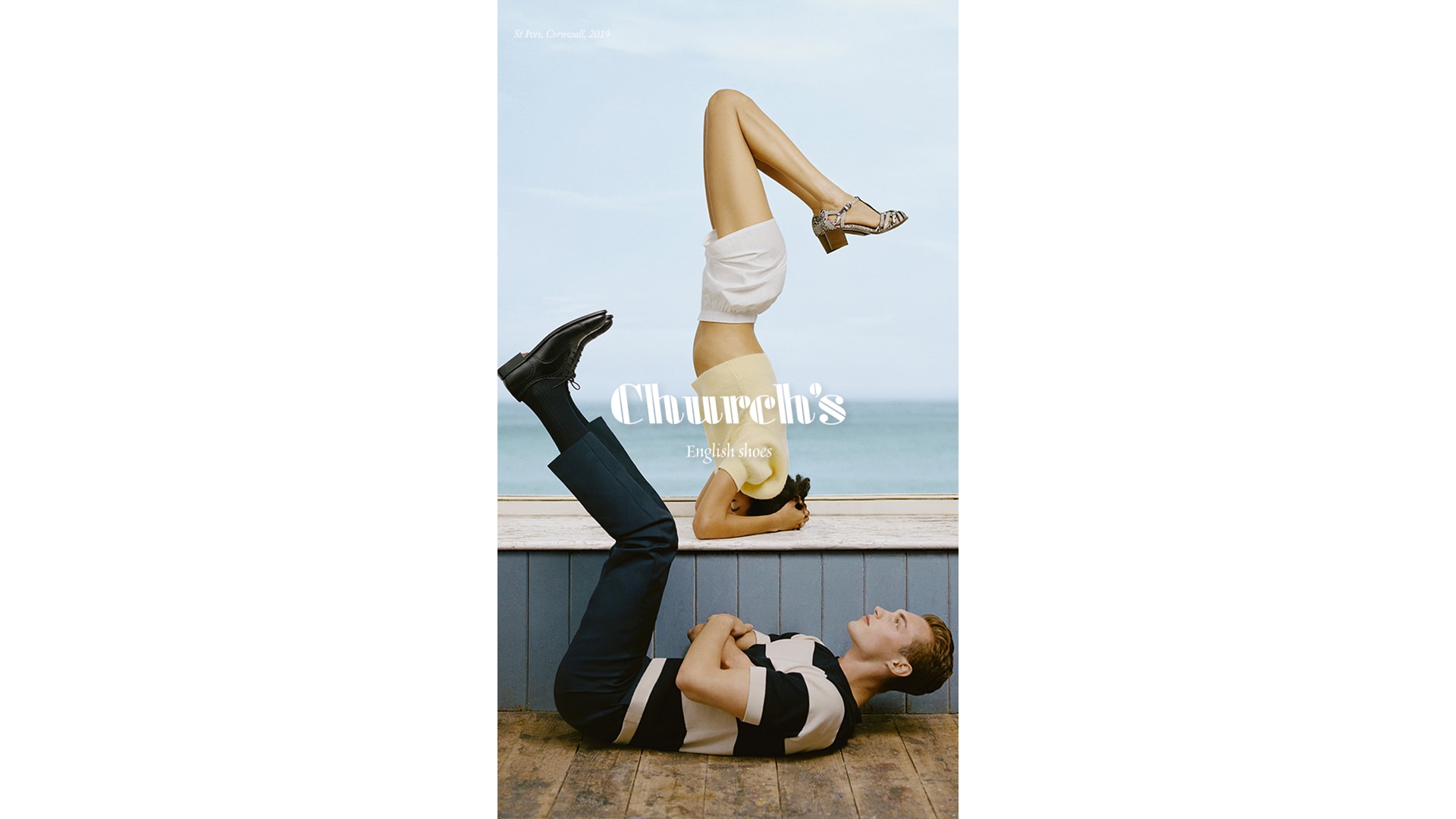 An almost imperceptible meeting of sea and sky and long stretches of white sand provide the backdrop to the advertising campaign for Church’s Spring/Summer 2020 collection, set in the English town of St. Ives. Romantic shots with a hint of irony convey the spirit and nature of the surroundings and beaches and offer glimpses of this part of Cornwall, recounting the joyful and carefree summer of three young people from a window overlooking the ocean. Brett Lloyd’s images present soft and natural colours, like the sand, smoothed by the waves, and the blue of the ocean that stretches beyond the cliffs, in a boundless place where time seems to stand still, and where everything feels vaguely surreal.