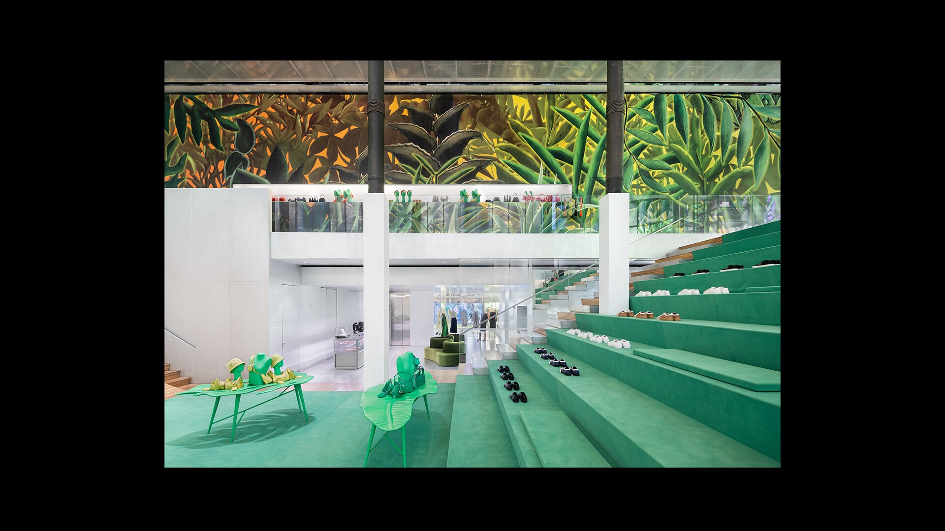 On 27 February, to mark the Hyper Leaves installation, Prada and leading online fashion and streetwear platform HypeBeast hosted a debate at Epicenter on Broadway in New York on the evolution of the retail experience and the integration of interactive elements into consumers’ purchasing habits. The event featured Courtney Kenefick, senior creative editor at HypeBeast, Samir Bantal, director of Rem Koolhaas’ studio AMO, Brett Littman, director of the Isamu Noguchi Foundation and Garden Museum and Stash, an American artist.