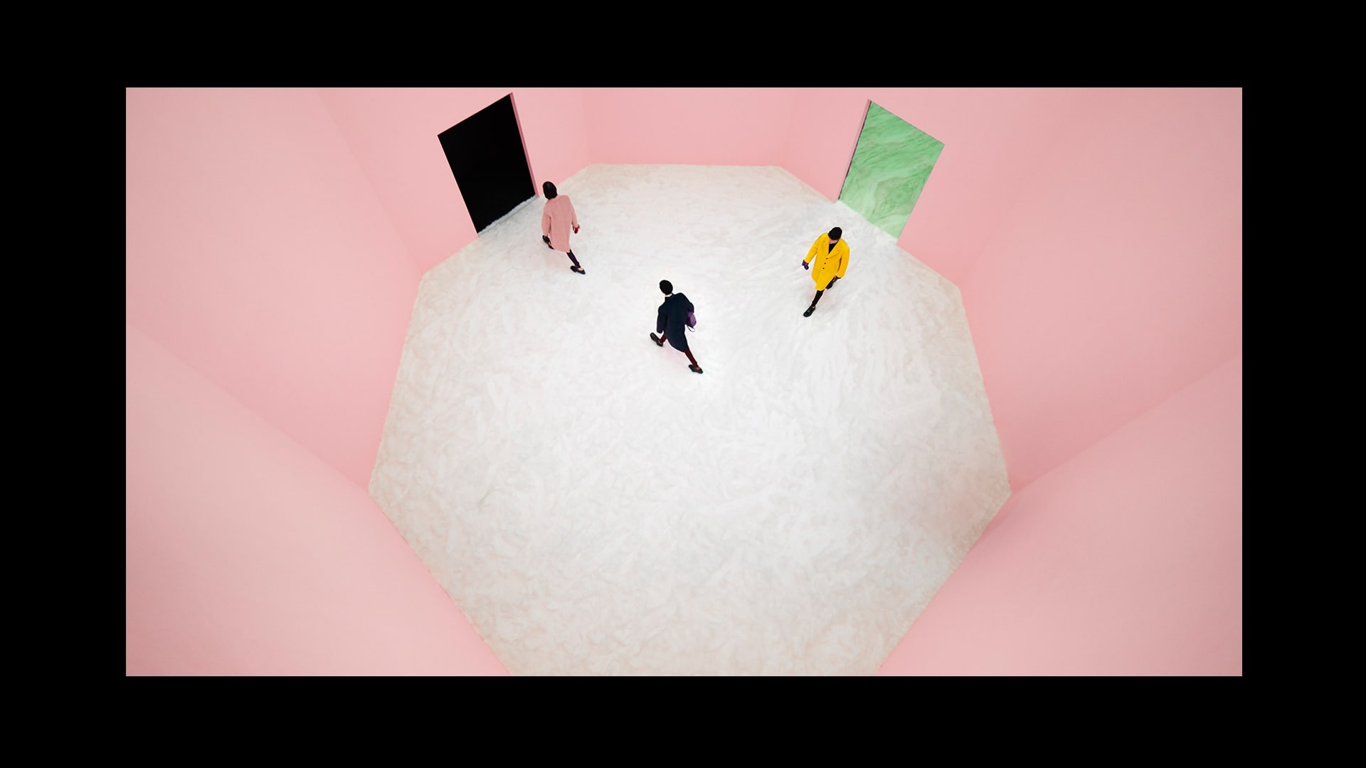 This need to feel and the pleasure of tactility, results on a multiplicity of surface texture and textile. Conceived by Rem Koolhaas and AMO, the show’s ‘non-spaces’ are defined by panes of marble, resin, plaster and faux fur. Inviting and seductive, they can pretend to be both interior and exterior, hard and soft, warm and cold: simultaneously both and neither, they allow absolute freedom of interpretation and expression