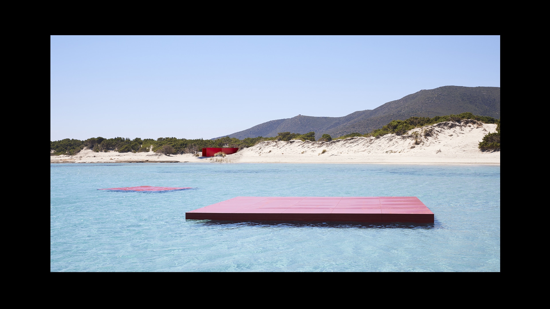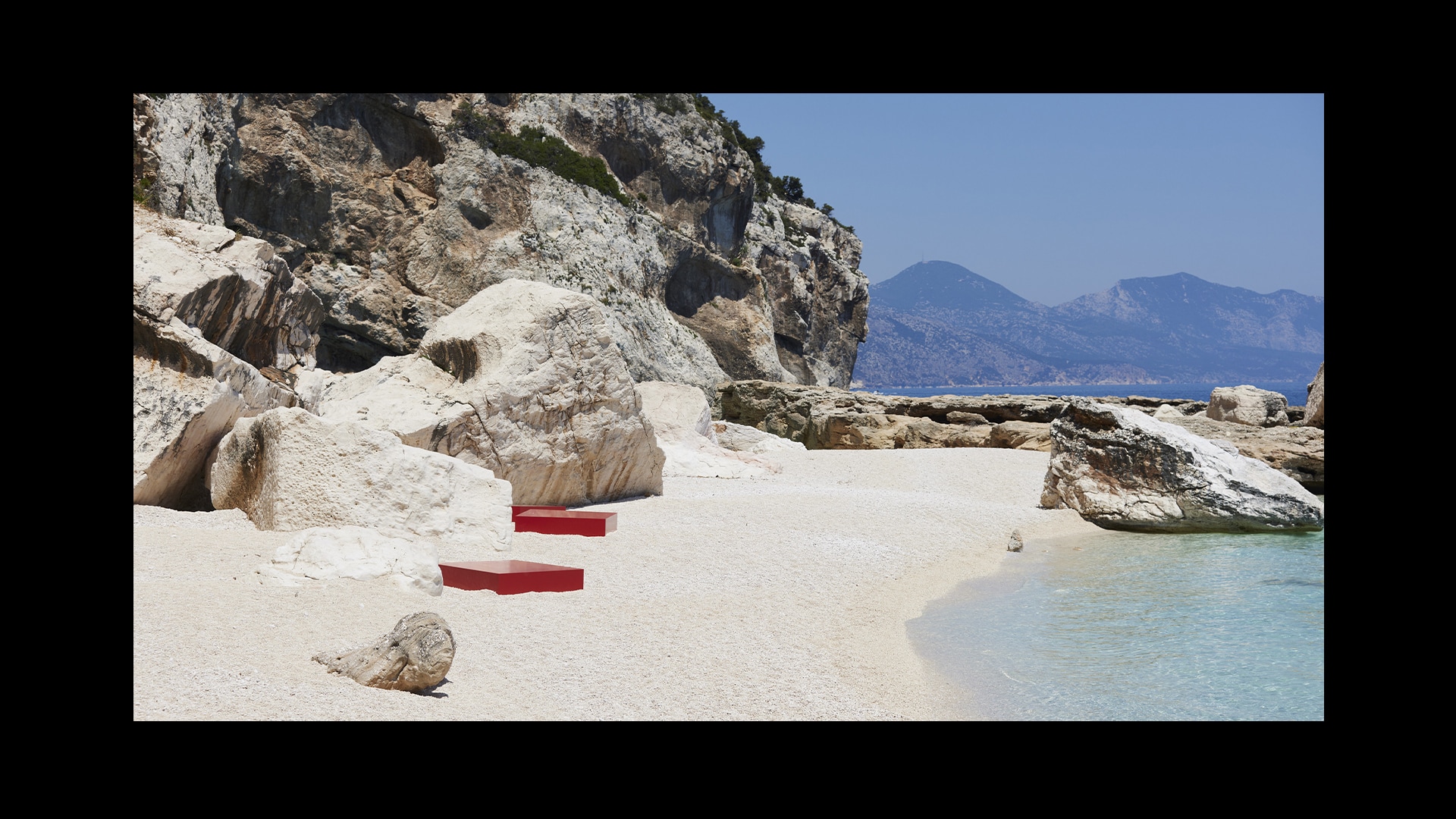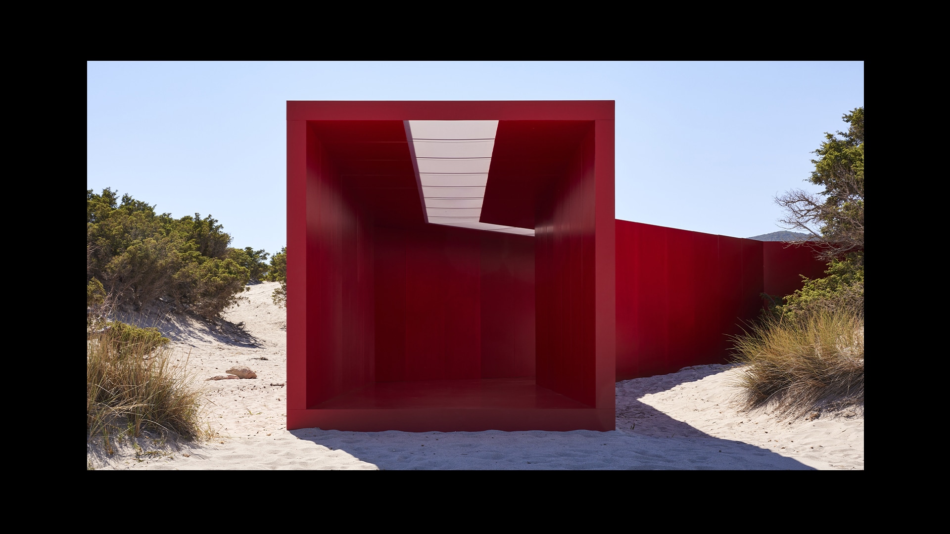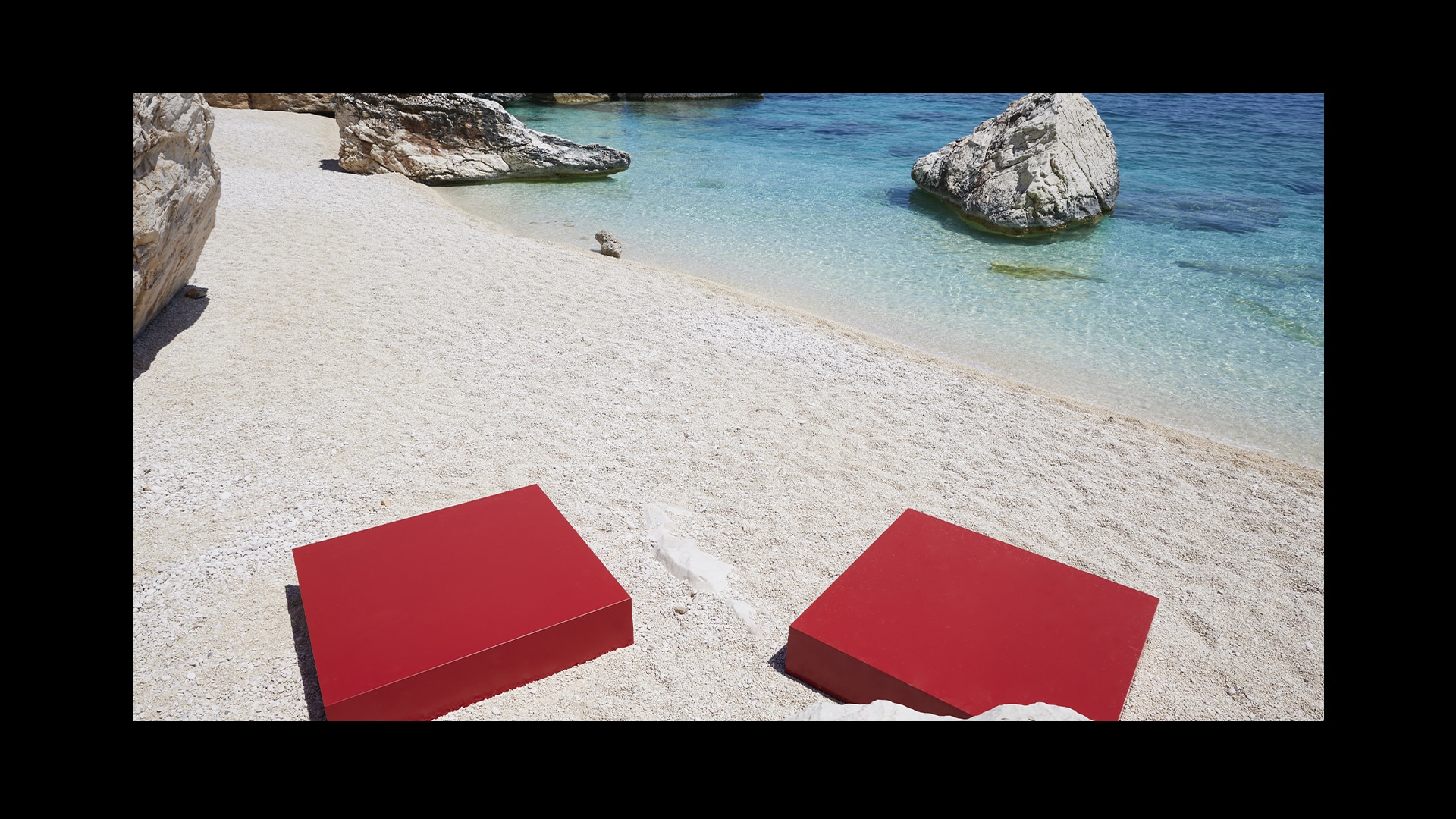 Milan, June 20th, 2021 - For the Prada Spring/Summer 2022 menswear show, AMO imagined a summer escape, concluding in a space where nature and artifact interact. Walking down a meandering red tunnel, we are brought to a new yet familiar environment. Lying in the sand among granite boulders, or floating on the clear sea, seemingly stranded red objects enjoy the pristine landscape - a surreal encounter with nature, seaside infrastructure of another kind. The Prada Spring/Summer 2022 menswear show was filmed in Milan at the Fondazione Prada’s Deposito, as well as in Sardinia, Italy.