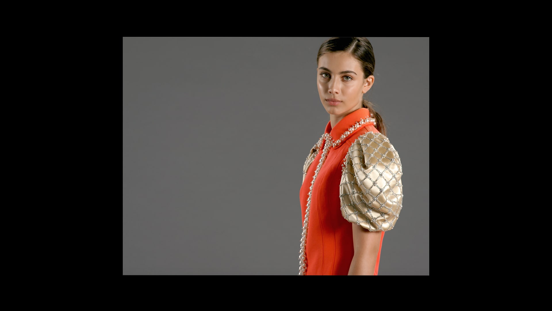 Elisa Visari indossa un abito Miu Miu vintage degli anni 60’. L’abito è un abito originale dei primi anni sessanta è stato impreziosito da un ricamo di perle e cristalli. Le maniche sono state realizzate successivamente in duchesse color avorio e ricamate da cristalli.