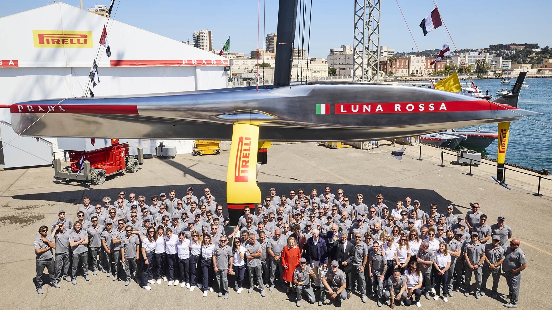 Il primo rivoluzionario monoscafo full-foiling AC75 Luna Rossa è stato varato il 2 ottobre 2019 a Cagliari, presso la base del team Luna Rossa Prada Pirelli. Dopo la benedizione dell’imbarcazione, Miuccia Prada insieme a Patrizio Bertelli, Agostino Randazzo (Presidente del Circolo della Vela Sicilia) e Marco Tronchetti Provera (Vice Presidente Esecutivo di Pirelli, co-title sponsor del team Luna Rossa) ha battezzato l’imbarcazione.