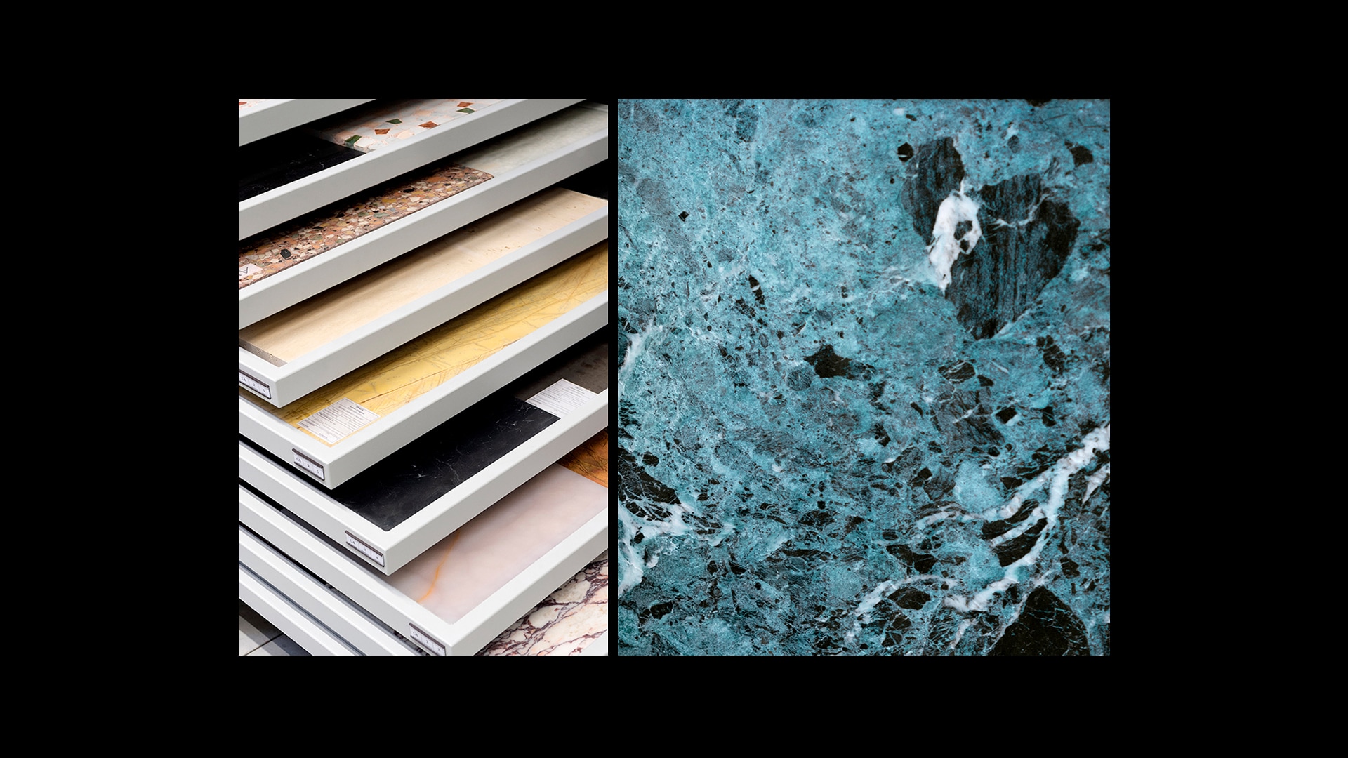 L’archivio Campioni raccoglie esemplari di materiali di ricerca, utilizzati per lo sviluppo dei negozi e delle architetture dei marchi. Una gamma ricchissima di legni, metalli, tessuti, pitture, encausti, vetri, materie plastiche, marmi e pietre da rivestimento.