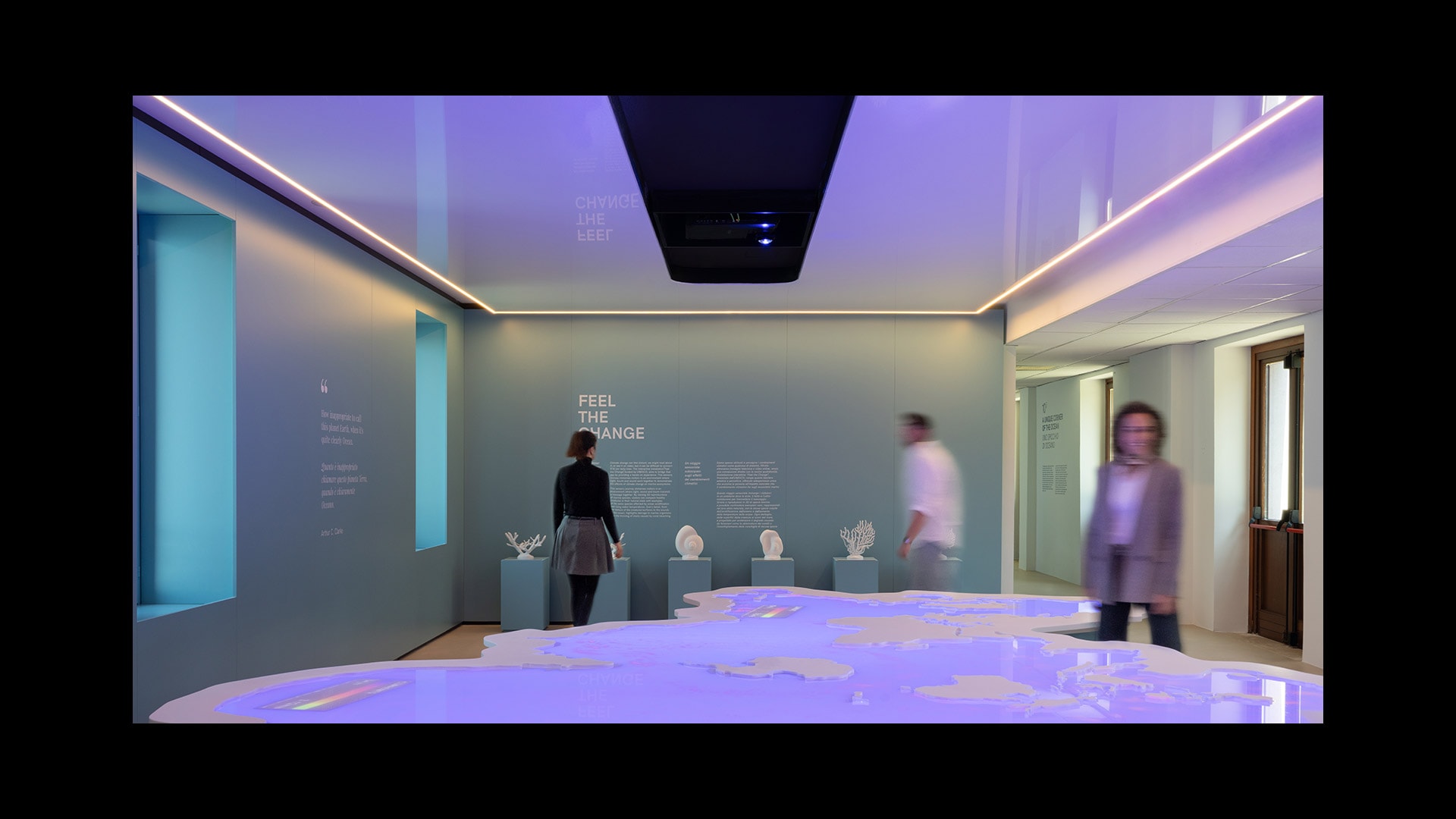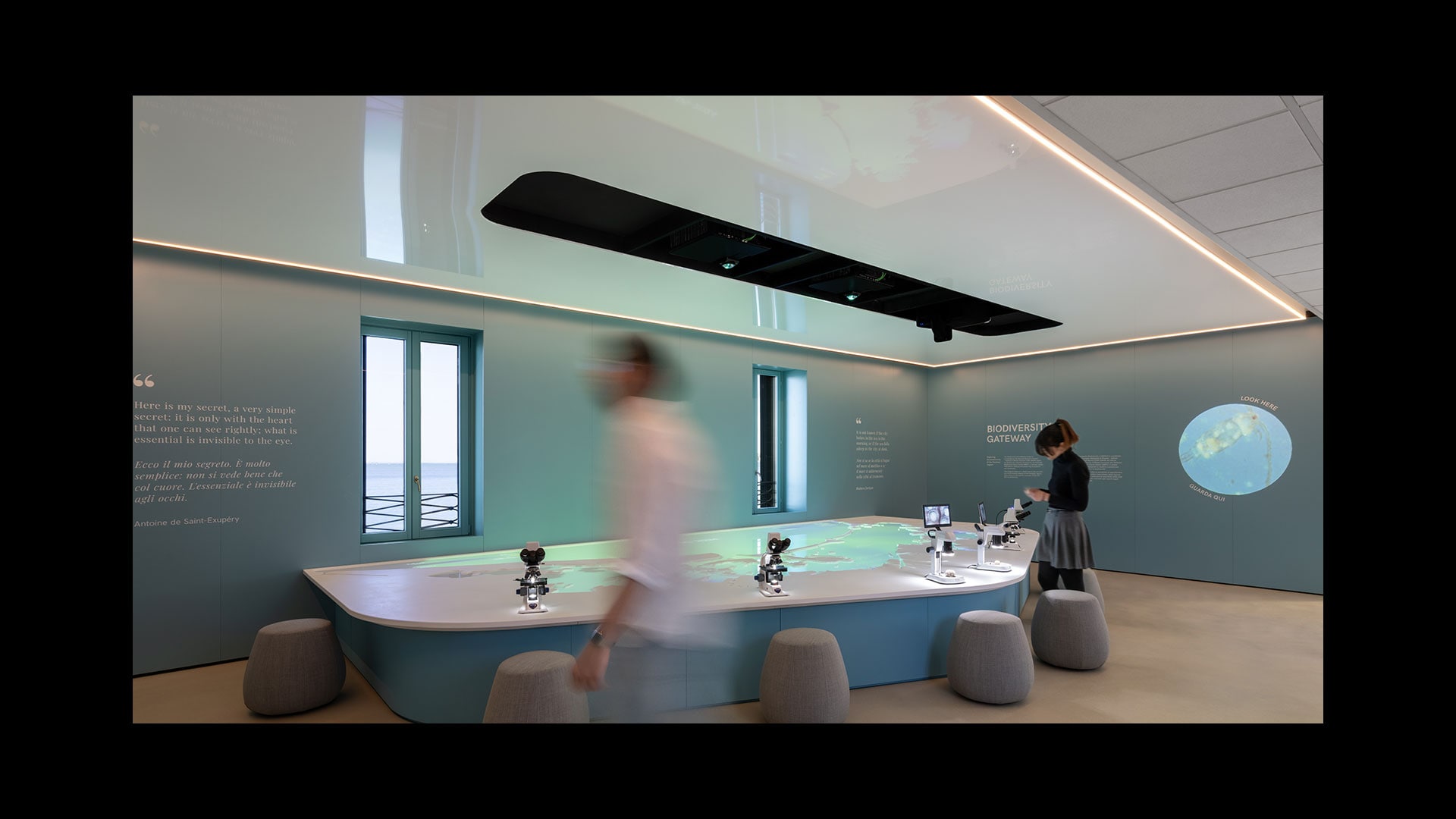 La progettazione, affidata allo studio CRA - Carlo Ratti Associati, concepisce organicamente tre sale, seguendo un approccio scalare, partendo da una visione d'insieme dell'oceano per poi concentrarsi sull’ecosistema lagunare e sull’ influenza dell’uomo.