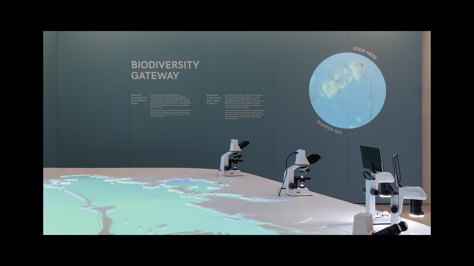 I visitatori potranno esplorare mappe immersive realizzate con la collaborazione di Dotdotdot, assistendo a una visione dinamica dell'oceano e della Laguna di Venezia grazie ai dati storici reali forniti da CMCC e CNR.