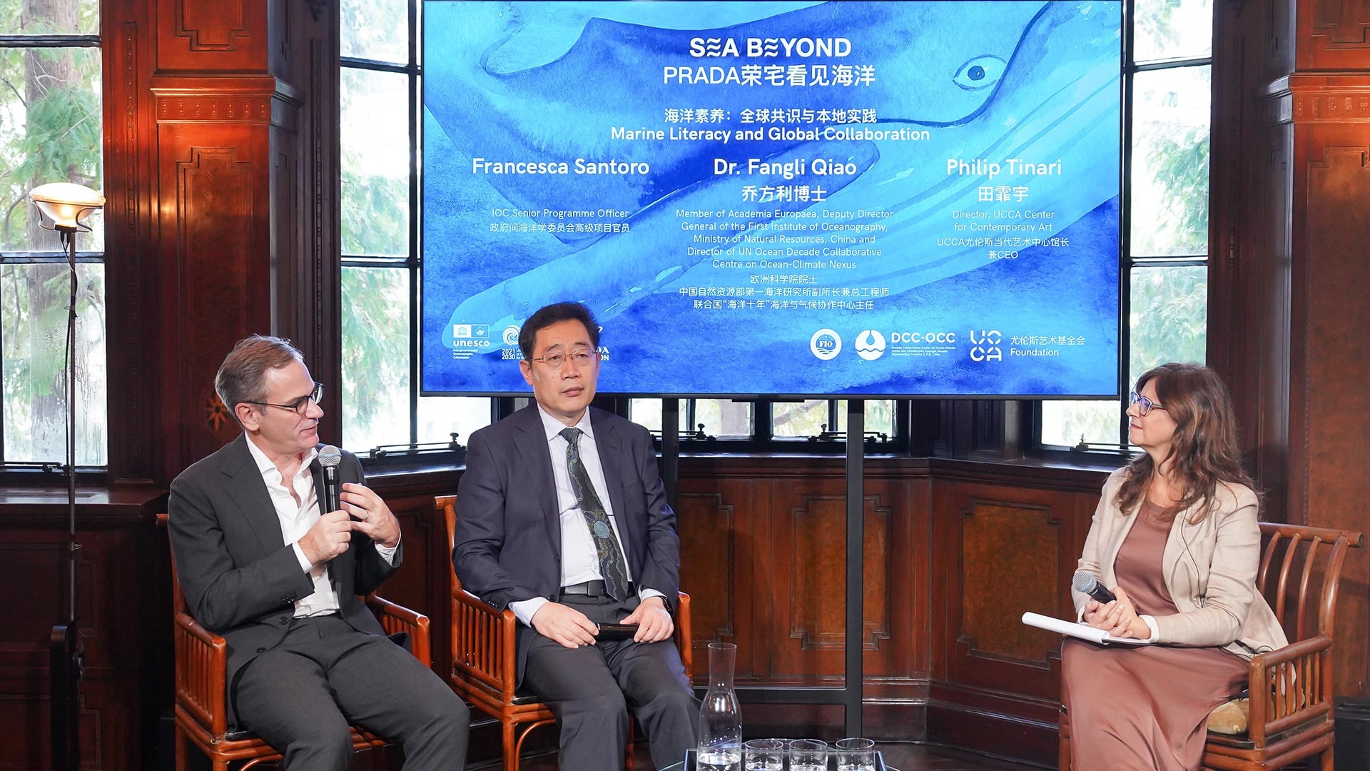 “Ocean literacy e collaborazione globale” ha visto Francesca Santoro, COI Senior Programme Officer, in conversazione con Fangli Qiao, Membro dell’Academia Europaea, Vicedirettore Generale del First Institute of Oceanography, Ministry of Natural Resources, China, e Direttore dell’UN Ocean Decade Collaborative Centre on Ocean-Climate Nexus e Philip Tinari, Direttore di UCCA Center for Contemporary Art per riflettere sul ruolo globale dell’ocean literacy e sull’importanza delle collaborazioni cross-settoriali.