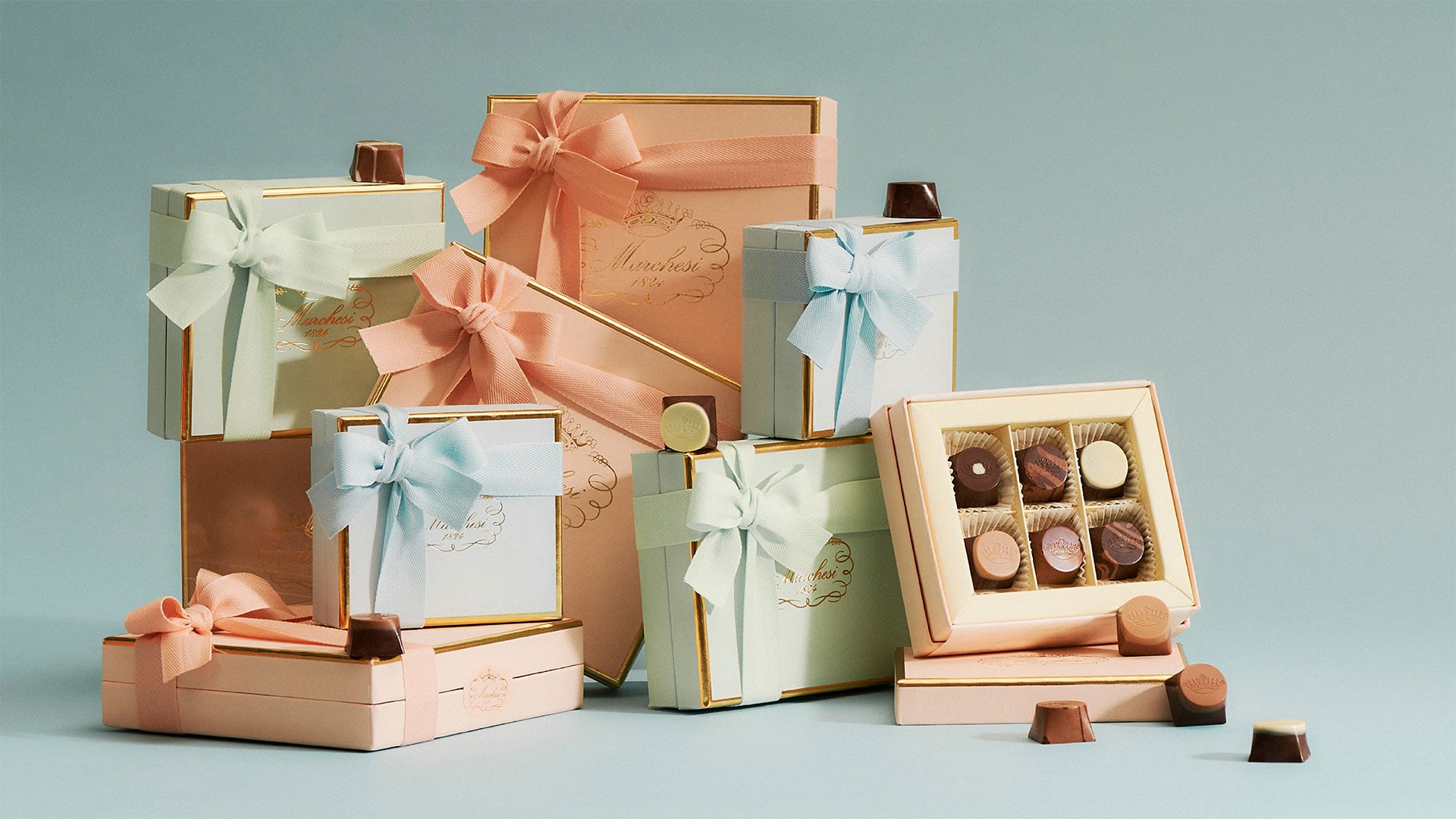 パスティッチェリア・マルケージの美味しさの決め手は、上質なサービス、ペストリーのデコレーション、料理の盛りつけ、ウィンドウのディスプレイ、パステルカラーとゴールドリーフ仕上げが特徴のアイコニックなパッケージなど、あらゆる表現に込められた細部への入念なこだわりにあります。