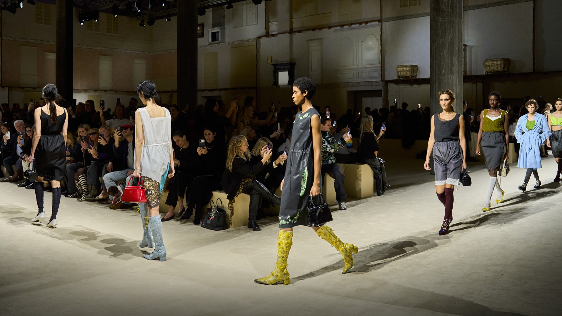 革新的なアプローチによる型破りな社会分析からインスピレーションを得て、プラダは流行を超越する規範を丹念に作り上げています。時にファッションの領域を明らかに超えたアート、映画、写真などの分野での情熱的な試行から生まれたスタイルの表明が、意表を突く視点から現実を再解釈した創作に結実しています。