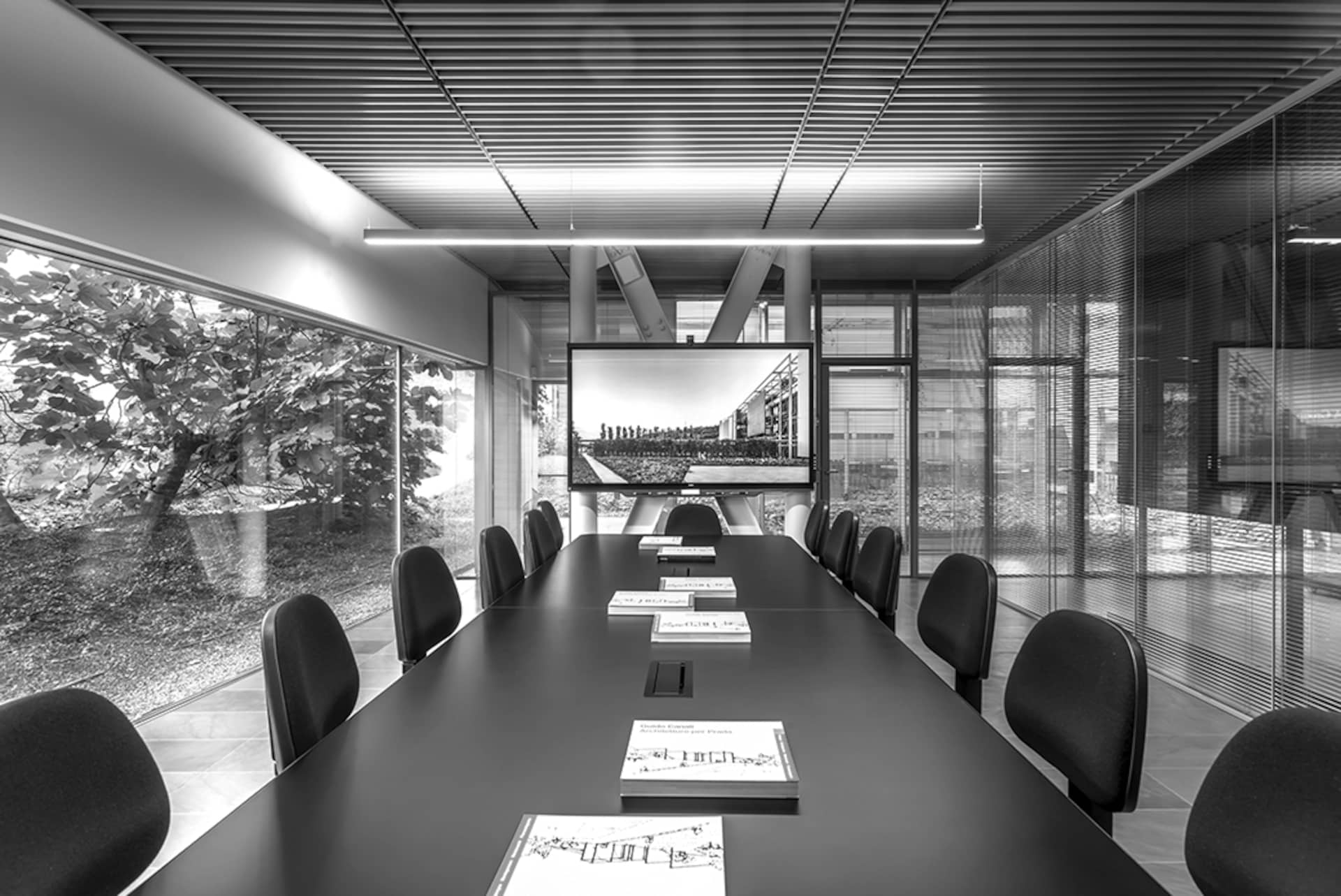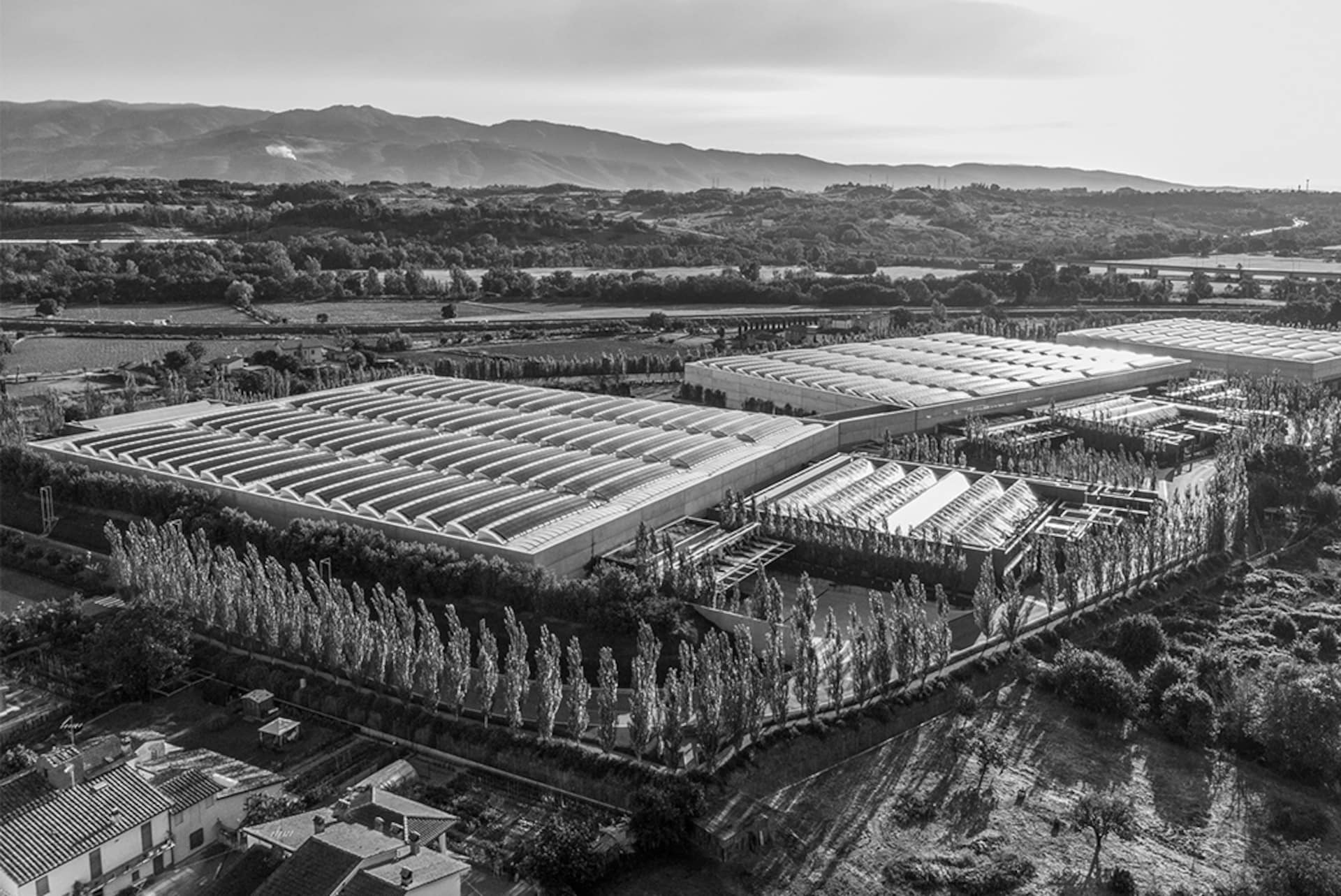 グイド・カナーリが設計した「ガーデンファクトリー」と呼ばれる4つの建物は、建築と自然の調和を通して、作業環境のクオリティとそれが従業員のウェルビーイングに与える影響を向上させるというパトリッツィオ・ベルテッリのビジョンを体現しています。