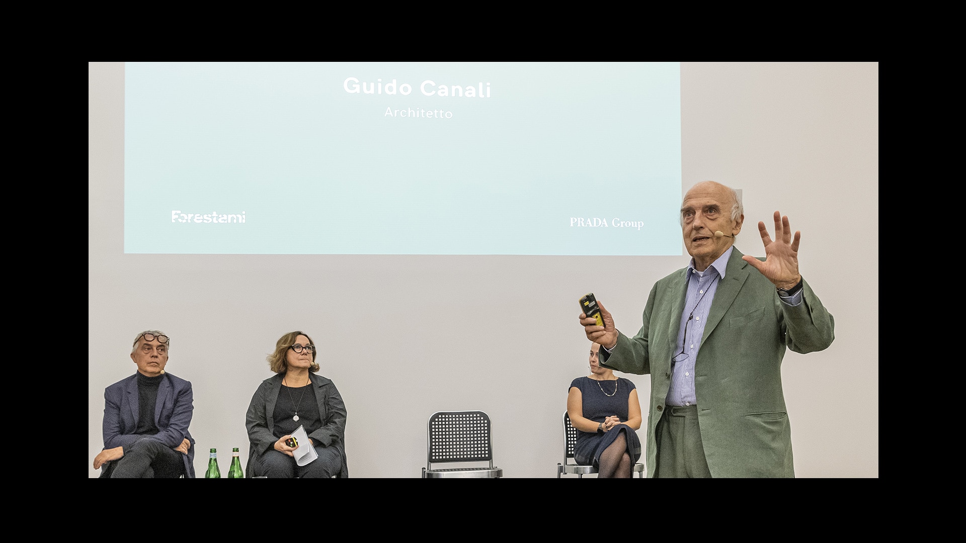 プラダ・グループCSR担当責任者のロレンツォ・ベルテッリからのメッセージから始まったこのイベントには、建築家のステファノ・ボエリ(Forestamiの科学委員会会長)とプラダ・グループの「ガーデンファクトリー」のデザイナー、グイド・カナーリが参加しました。グイド・カナーリは、長年にわたり自然をデザインの主要な要素とする実験的プロジェクトに携わってきました。建築家でジャーナリストのシルビア・ボッティの司会による討論には、外科医で研究者、パヴィア大学第3ミッションのプロレクターであるヘラス・セーナが人々の心身の健康にもたらす緑地の影響について分析し、Forestamiのミラノ ポリテクニック科学ディレクターのマリア・キアラ・パストールも参加しました。