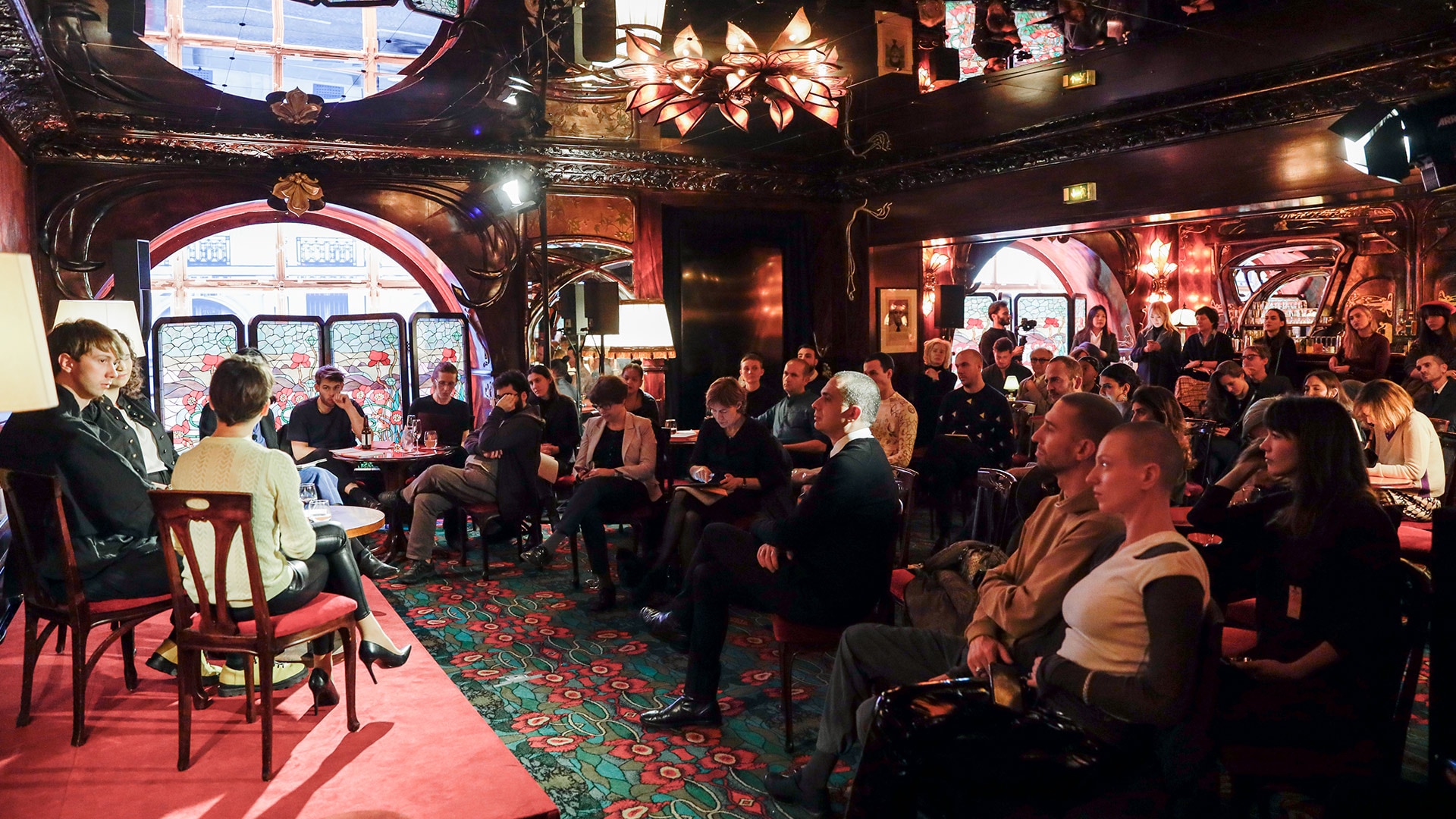 「パリ オートクチュール」コレクションに合わせて1月19日と1月20日に開催されたプラダ モード パリの会場となったのは、ベルエポック全盛の1893年に創業した伝説的なレストラン「マキシム」。プラダ モード パリでは、AIの研究者であるケイト・クロフォード教授とアーティスト兼研究者のトレバー・パグレン氏が、データ収集、監視、顔認識に焦点を当てたアートプロジェクトを取り入れて建物に変更を加え、この象徴的なレストランを「Making Faces」と題されたインスタレーションに変身させました。ディベートや、この会場限定のアート作品、爽快なパフォーマンスとライブミュージックが用意されたパーティで活気にあふれた2日間となりました。2日間にわたるイベント全体の食体験をアレンジしたのは、有名な星付きレストラン「Septime」のシェフ、ベルトラン・グレボー氏です。