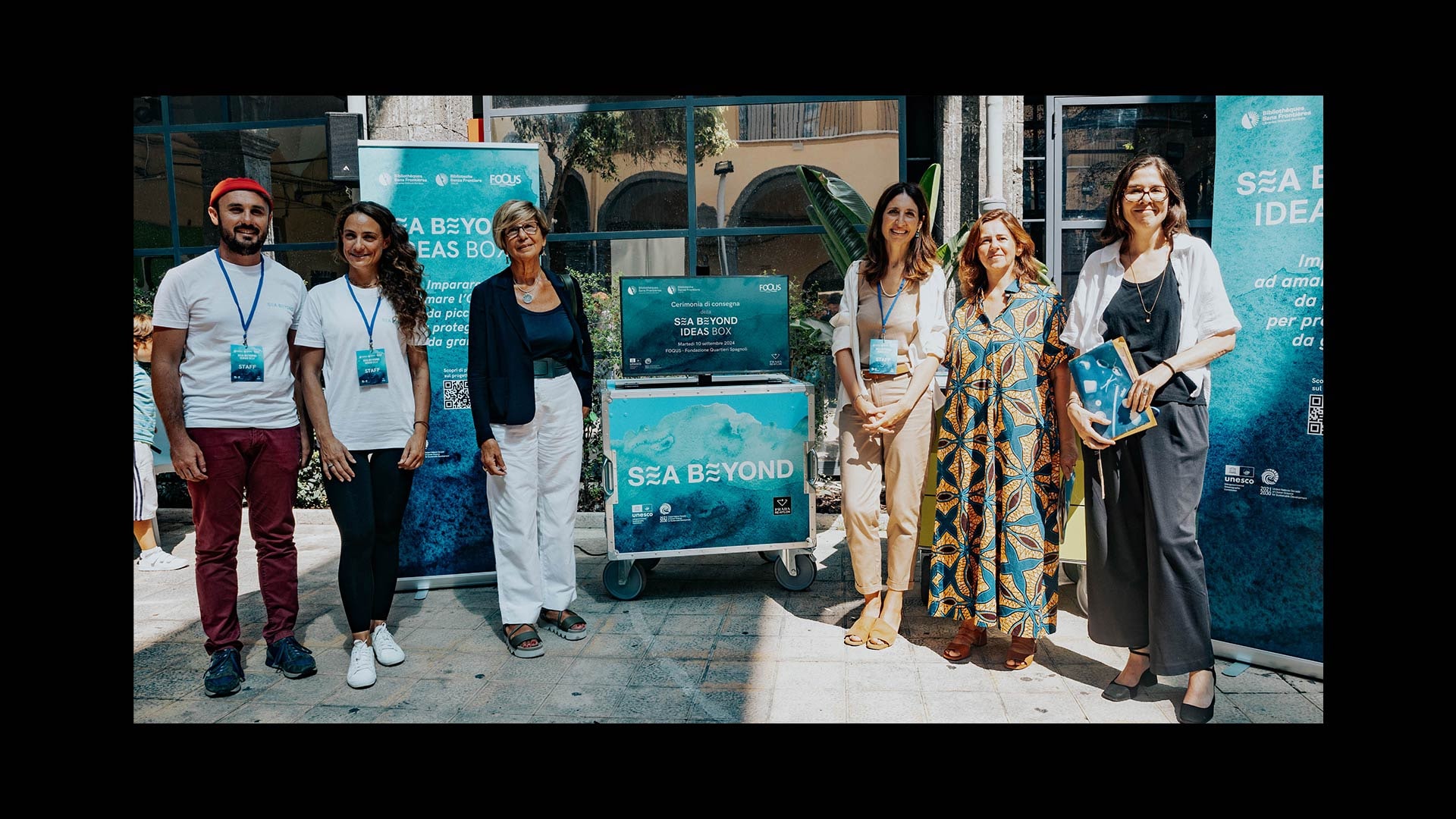 ヴェネツィアでのイベントの後、SEA BEYONDアイデアボックスは、ナポリのスペイン地区財団に寄贈され、Maestri di Strada Onlus協会、Centro Polifunzionale Ciro Colonnaの協力によって、ナポリ臨海実験所から、テルッツオルオーゴ財団Sant’Anna a Capuana文化スペース、東ナポリ地区へと移動し、ネットゥーノ王国海洋保護区との協力によってイスキア島とプロチダ島でも展開されました。