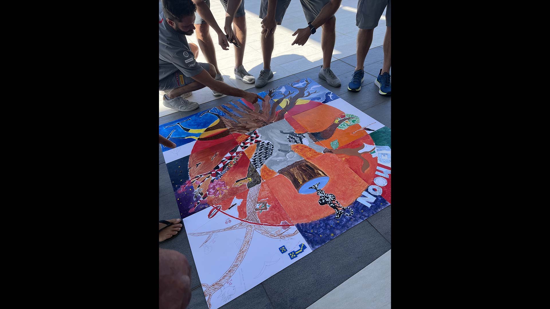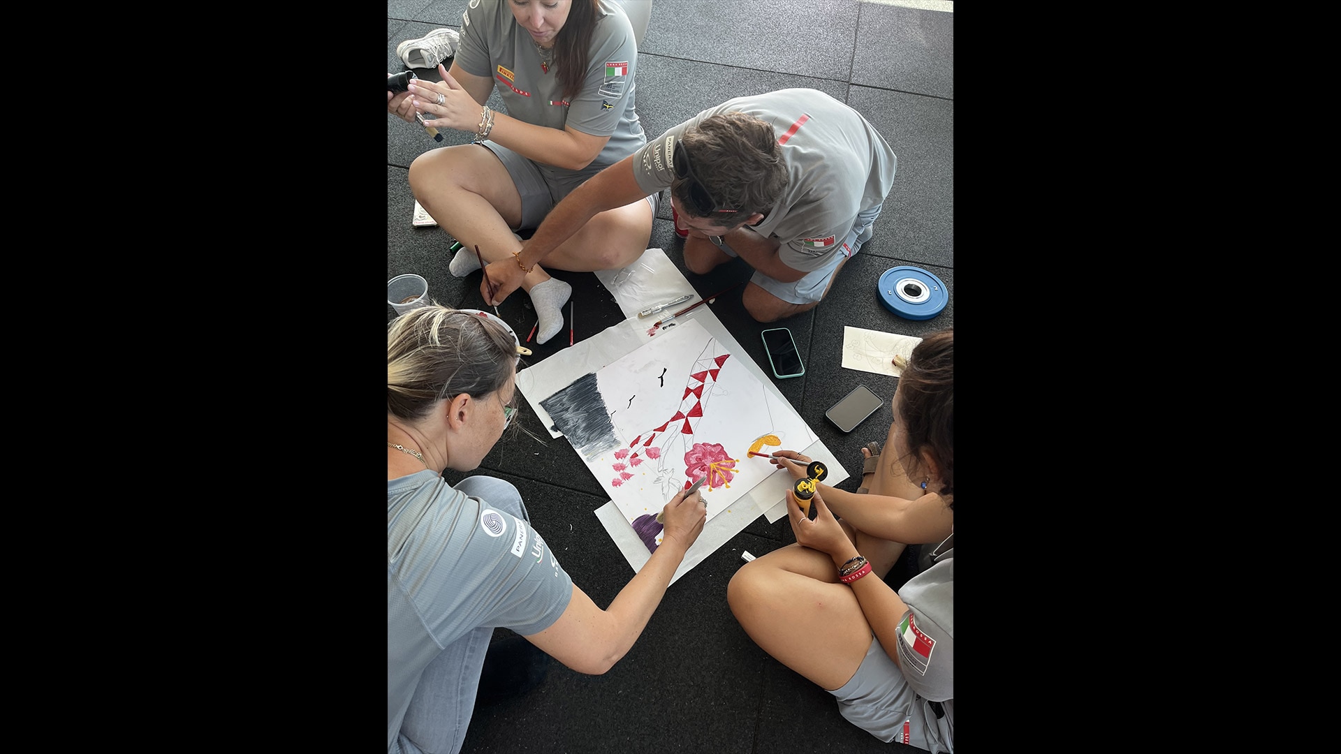 Durante le attività, i partecipanti hanno lavorato insieme alla realizzazione di un’opera collettiva composta da più pannelli: un esercizio creativo pensato per stimolare la coesione e il dialogo.