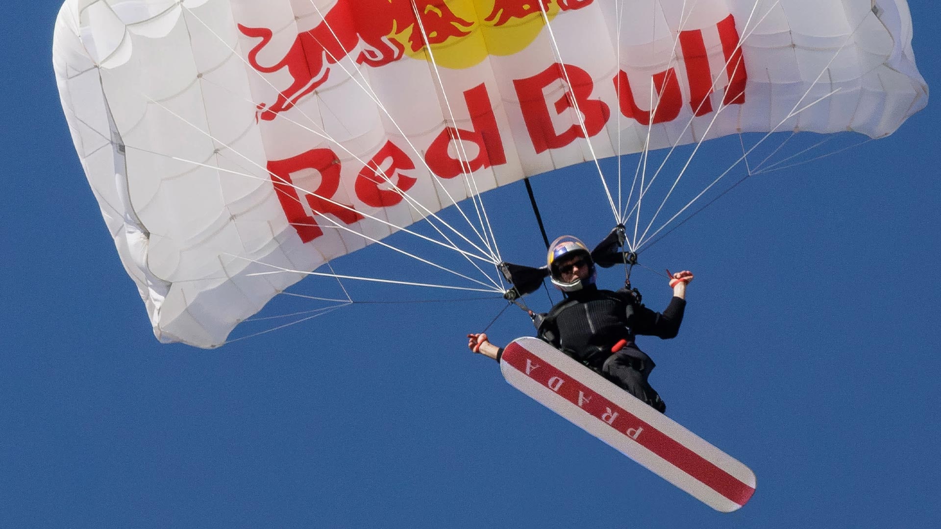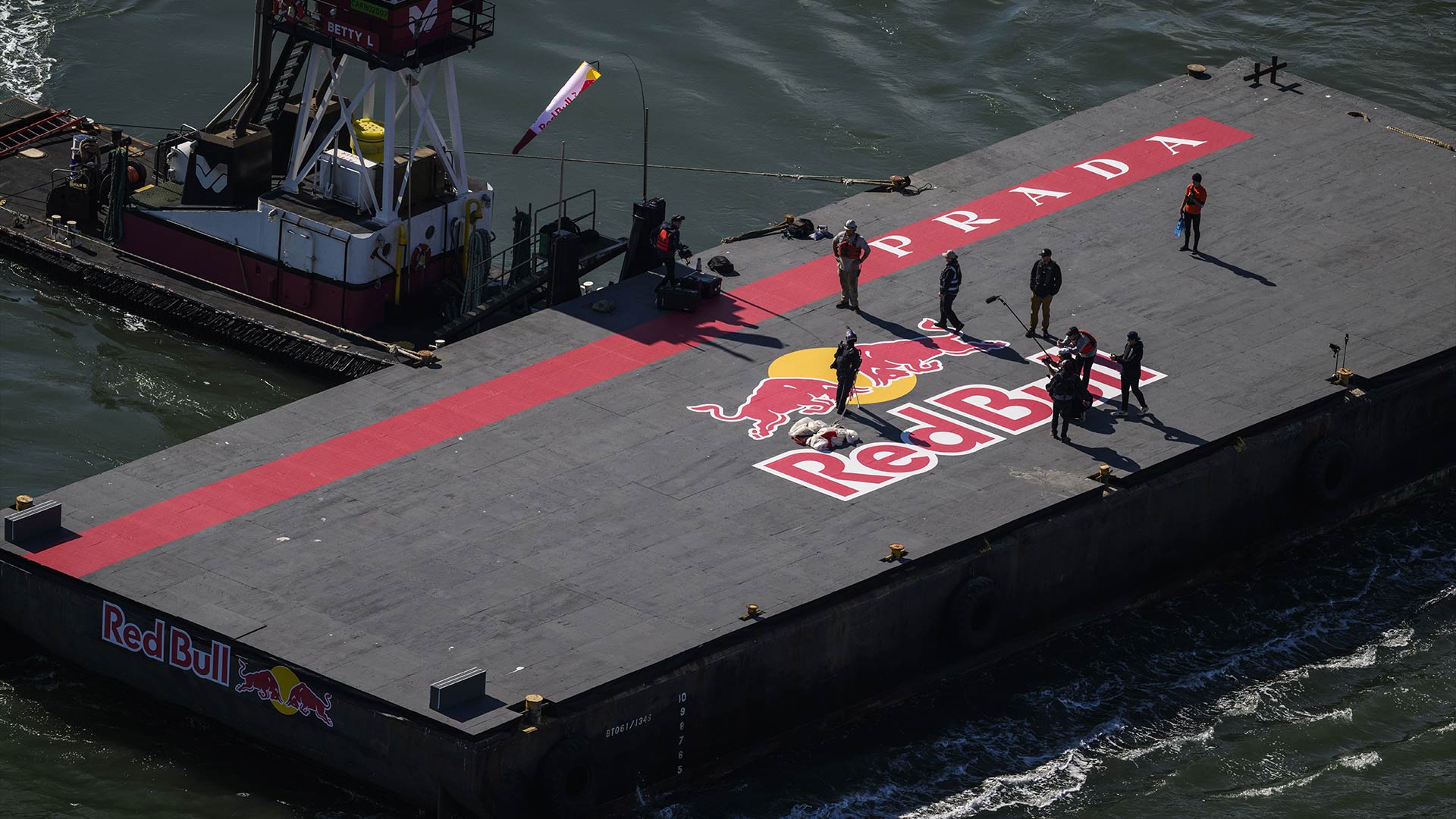 この生涯の夢を実現するには、数か月にわたるトレーニングと、最先端技術を駆使した特別な装備の開発が必要でした。マコーマックはベイ上空のヘリコプターから、プラダ リネア・ロッサとルナ・ロッサ チームが共同開発した専用のハイテクボードを装着して降下。長いスカイサーフの後、橋のケーブルに到達し、数秒間その上を滑走してからスパイラルターンを決め、橋の下に設置された浮遊プラットフォームに着地しました。