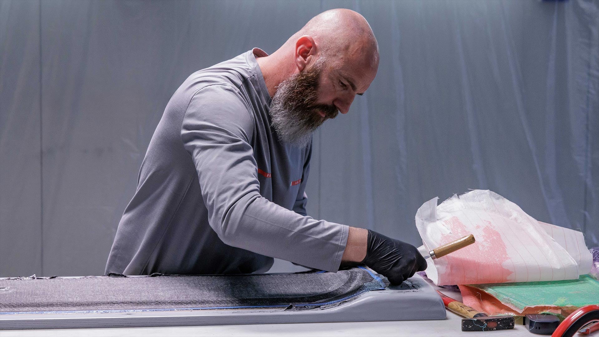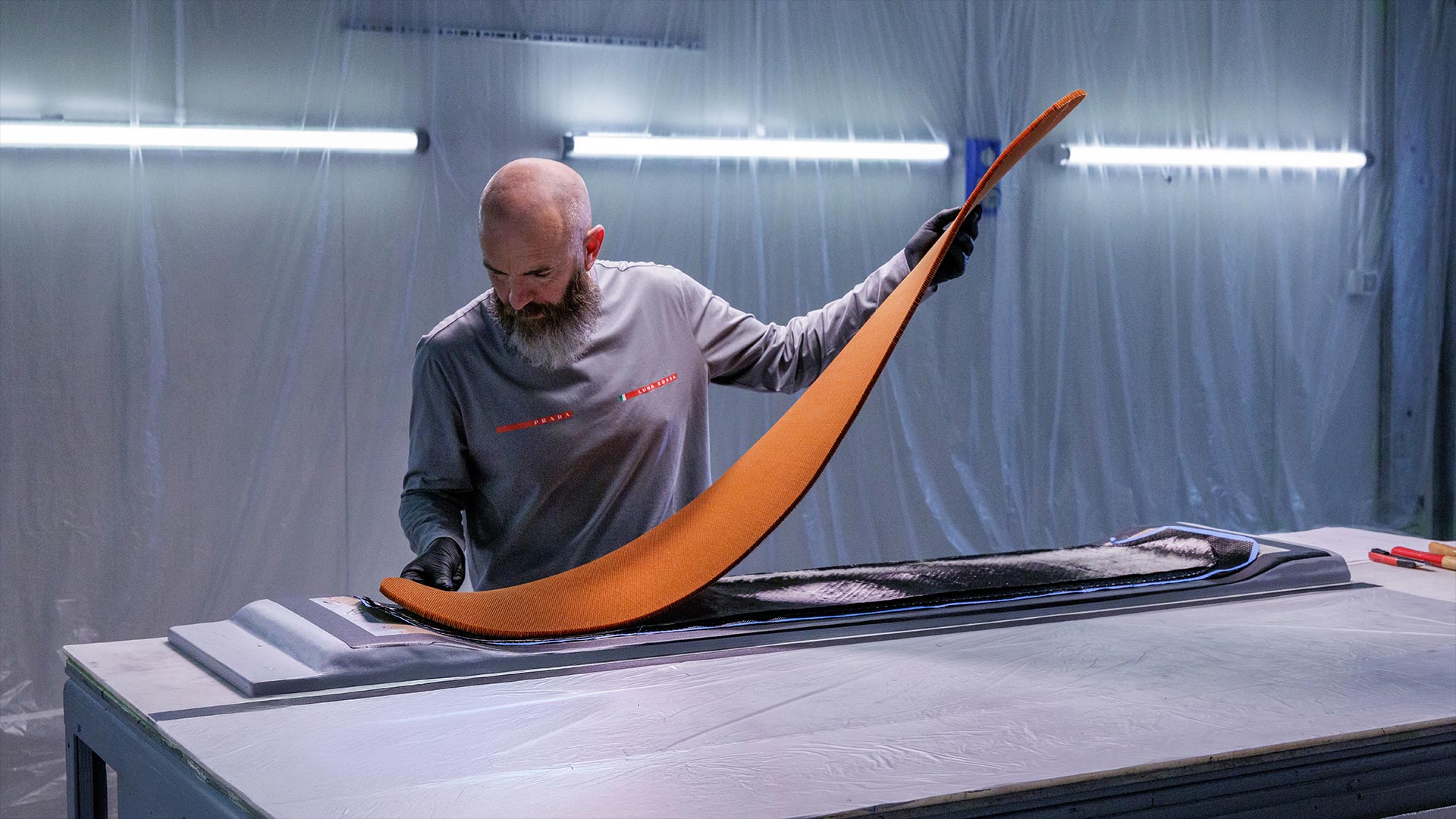 細部に至るまで緻密に調整されたボードのデザインプロセスは、ルナ・ロッサチームがこれまでにアメリカズカップ大会に向けて精緻化してきたエンジニアリングのノウハウに基づくものです。今回の偉業は、調査研究・機能・デザインを融合することで、最も困難な課題でも克服可能であることを証明しています。プラダ リネア・ロッサはまた、革新的な素材と実用性に優れた最先端の航空力学デザインを融合させた高性能ウェアとアクセサリーを提供し、マコーマックの挑戦を支えました。