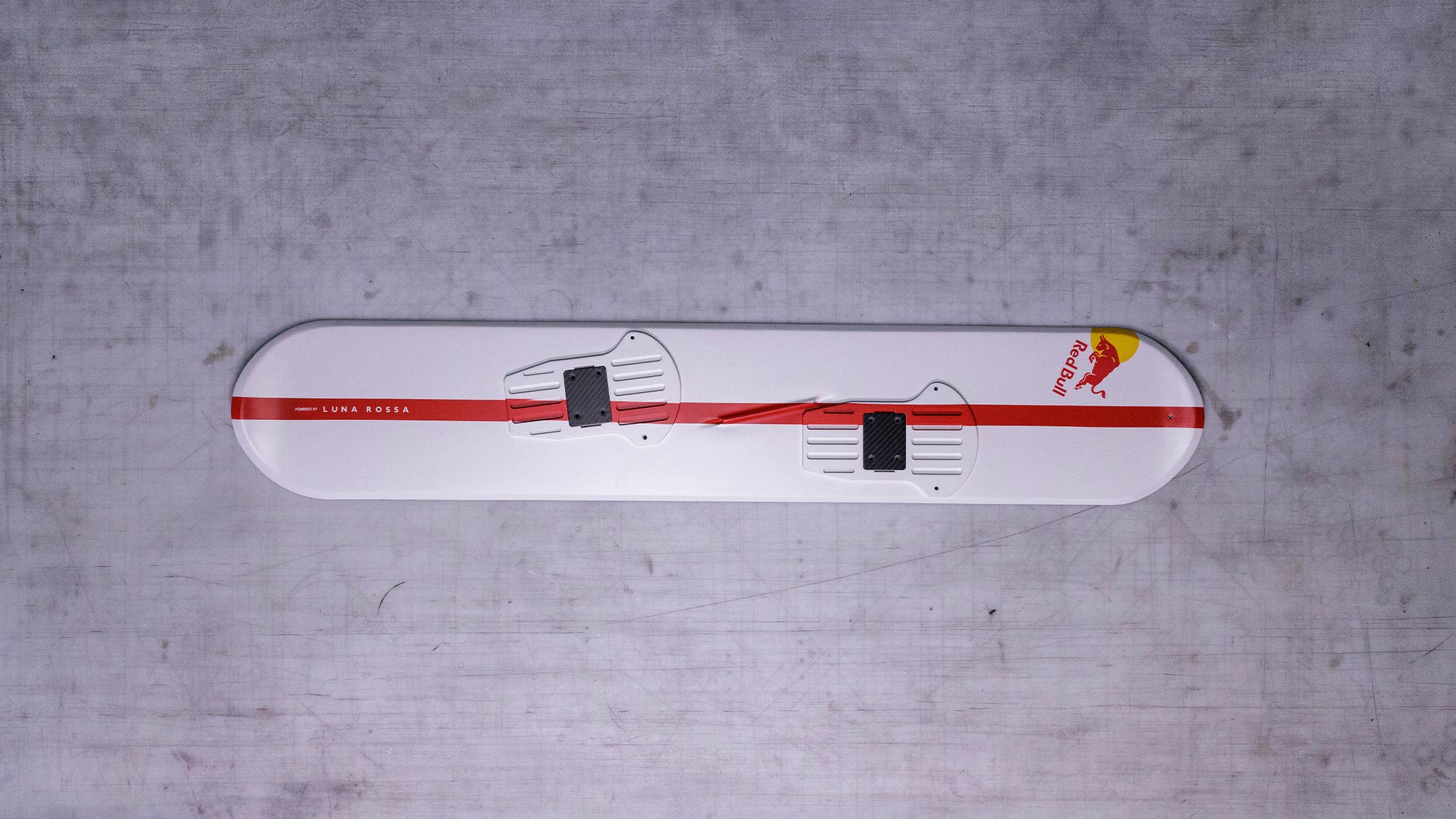ボードは、この複雑な操作を成功させるのに必要な特定の要件を満たすよう特別に設計されており、ハニカムコアとカーボンファイバー層を組み合わせることで、飛行段階で最大の反応性と制御が得られる構造としました。ボードのベースには、ベイブリッジの金属ケーブルとの接触による摩耗に耐えられるよう、高密度でありながら軽量のポリエチレンを採用。耐久性の高いシームレスな表面とするため、接着材を使う代わりにグラフィックデザインのペイントを施して仕上げています。