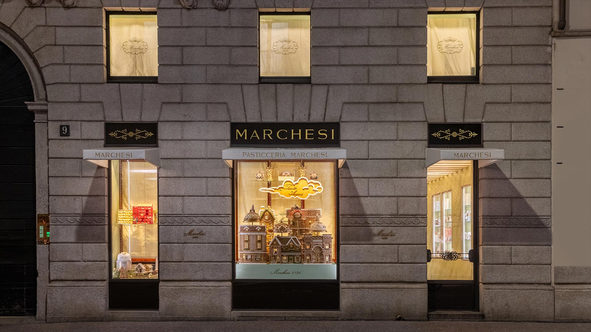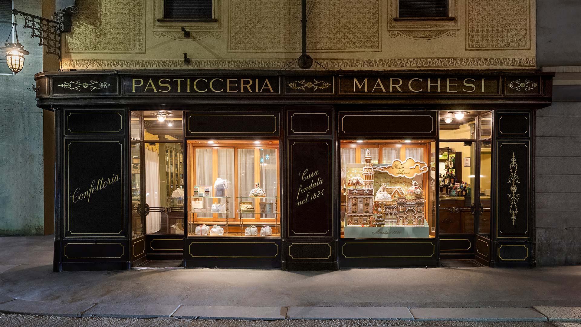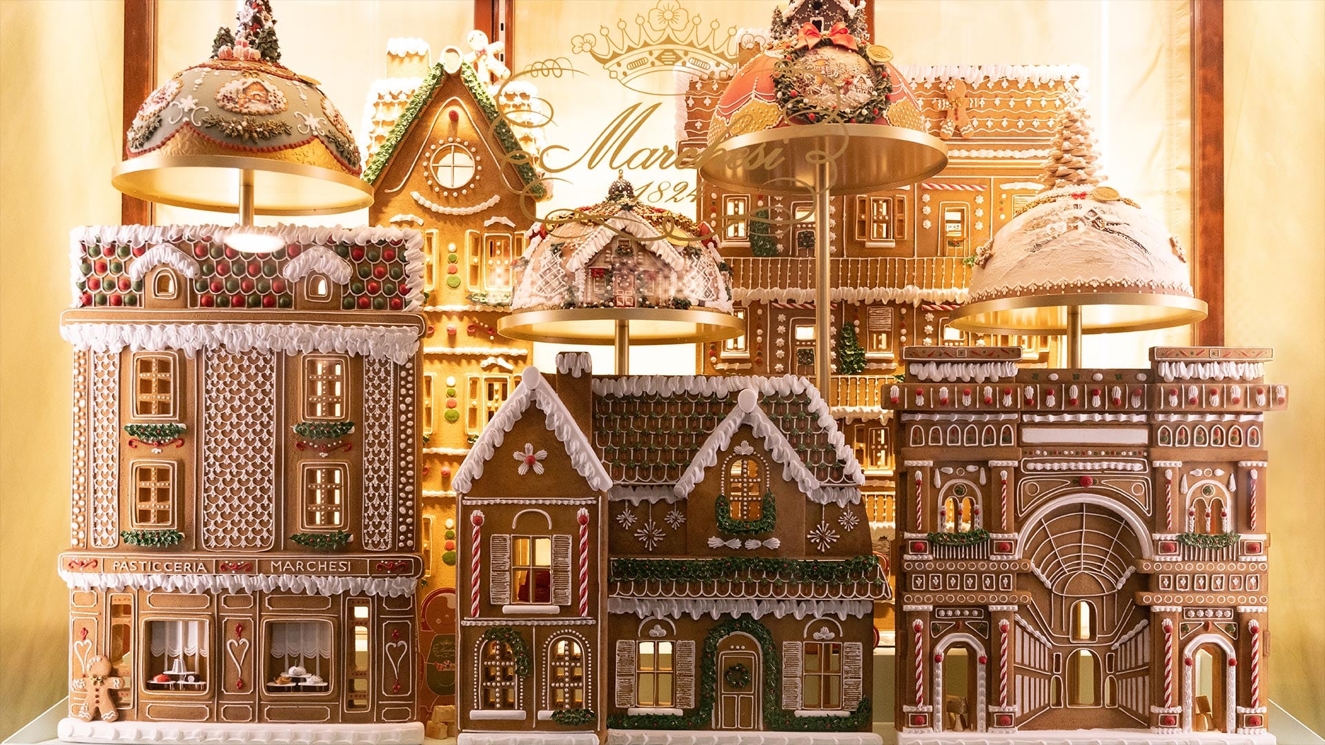 Marchesi 1824 trasforma le proprie vetrine in una scena incantata e suggestiva raffigurante la città in versione casetta di Pan di Zenzero. Il risultato è una suggestiva “Milano di Pan di Zenzero”. Non una semplice decorazione, ma un’autentica riproduzione in miniatura di palazzi, guglie e scorci meneghini, tutti finemente realizzati e decorati. Questa scenografia unica porta nelle vie della città un’atmosfera calda, accogliente e pervasa di magia. Il progetto pone l’accento sulla maestria artigianale che contraddistingue Marchesi 1824 e che, sotto la direzione del Pastry Art Director Diego Crosara, si esprime nella cura dei dettagli e nell’eccellenza pasticcera.