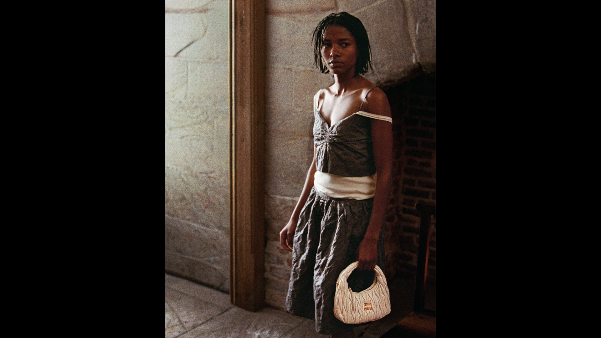 Il 13 novembre, Miu Miu presenta la campagna Holiday 2025, realizzata da Angela Hill e interpretata da Gigi Hadid, Dede Mansro, Viola e Ju Xiaowen. Le protagoniste della campagna si ritrovano per il periodo delle festività all’interno di una dimora elisabettiana immersa nella campagna inglese, ciascuna con la propria attitudine e personalità. Filmata con una videocamera Super 8 e fotografata su pellicola, la campagna restituisce un’estetica autentica e materica. Mattoni antichi e pietre segnate dal tempo creano un contrasto intenso ed emotivamente evocativo: lo splendore fragile dell’architettura dialoga con la giovinezza luminosa di chi la abita, restituendo un’immagine sospesa tra passato e presente.