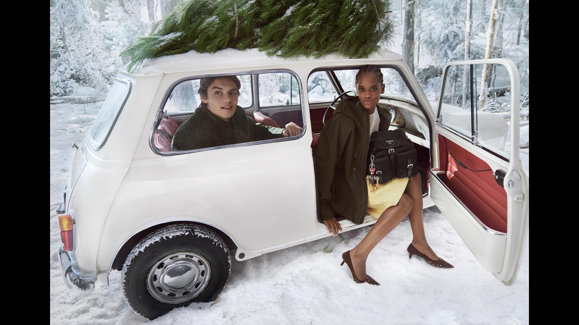 Un itinerario lungo un paesaggio innevato e incontaminato, un percorso di riscoperta, un ritorno. L’archetipo invernale senza tempo e senza età, celebrato dalla campagna Prada Holiday 2025, è un viaggio in automobile che si snoda fra alberi di un bianco cristallino.