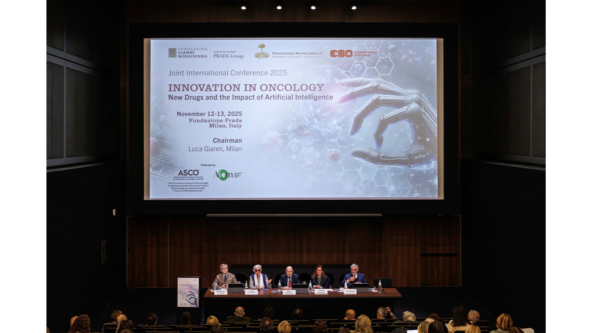 Si è tenuta il 12 novembre, presso il Cinema Godard della Fondazione Prada a Milano, la conferenza stampa di apertura della “Joint International Conference 2025: Innovation in Oncology – New Drugs and the Impact of Artificial Intelligence”, organizzata da Fondazione Gianni Bonadonna con il supporto del Gruppo Prada, da Fondazione Michelangelo e dall’European School of Oncology. L’evento, ha visto riuniti i massimi esperti mondiali di oncologia, clinici e ricercatori per due intense giornate dedicate all’innovazione nella ricerca e nella cura dei tumori. Nel corso della conferenza stampa sono inoltre state presentate le iniziative in corso e future frutto della collaborazione tra Fondazione Gianni Bonadonna e il Gruppo Prada, a partire dal recente lancio dell’Istituto Diffuso. Al centro dell’attenzione anche l’impegno nel formare e valorizzare le nuove generazioni di ricercatori con l’annuncio del proseguimento della “Fellowship Gianni Bonadonna”.