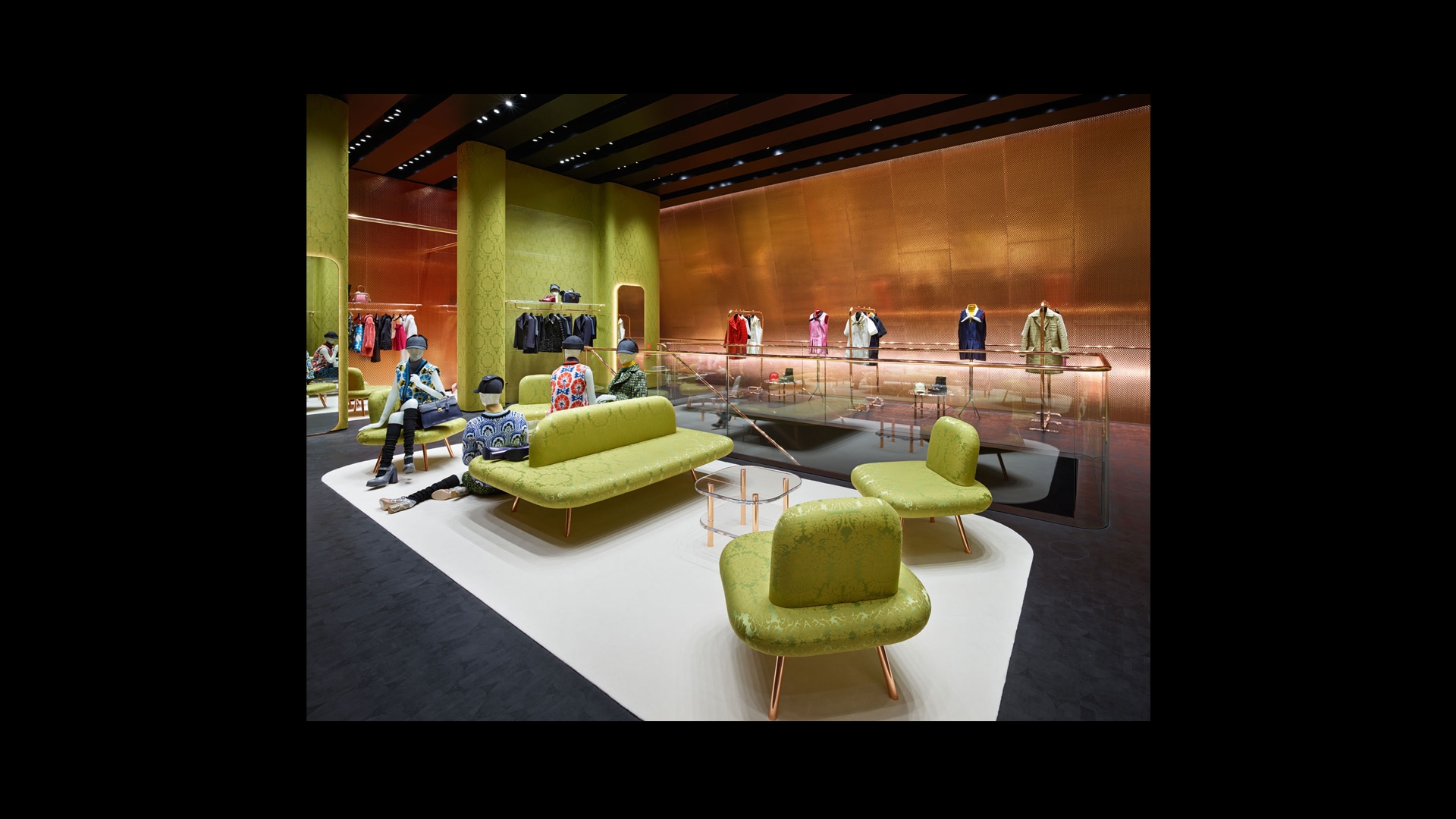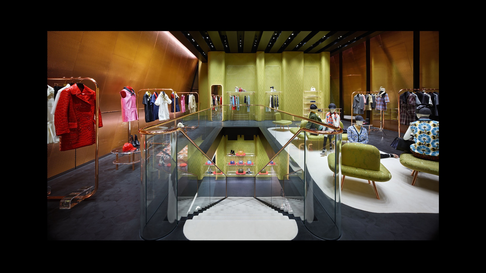 Prada限时店主打别具创意的设计,营造具有启迪意义的独特环境,让顾客在购物的同时,可体验我们的零售故事。