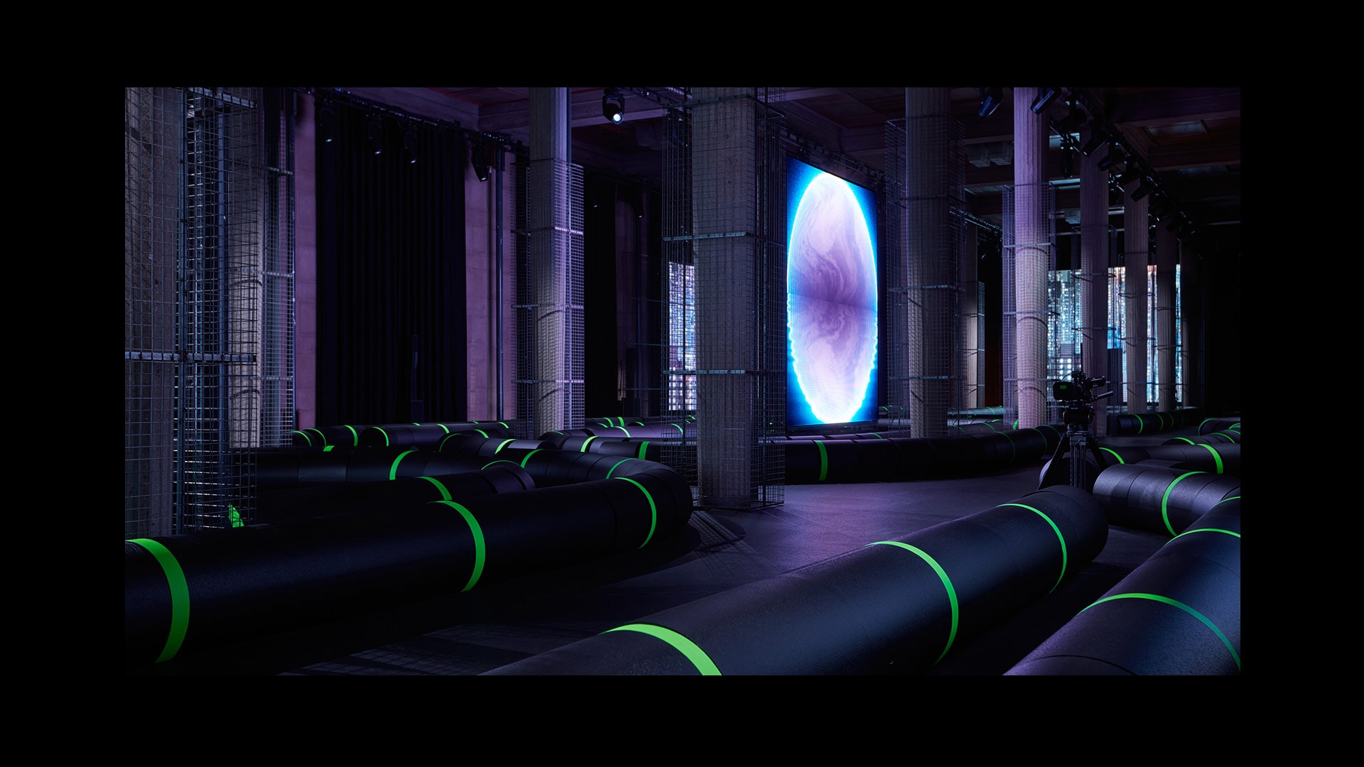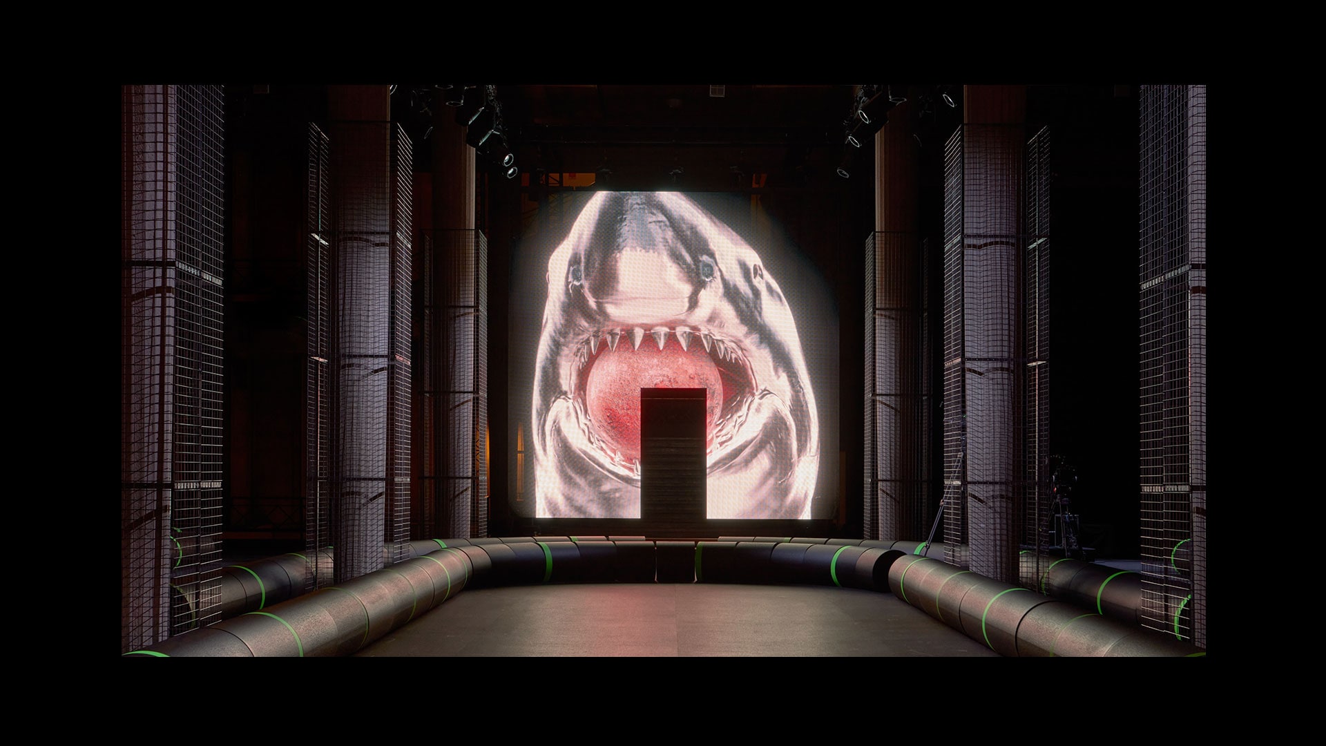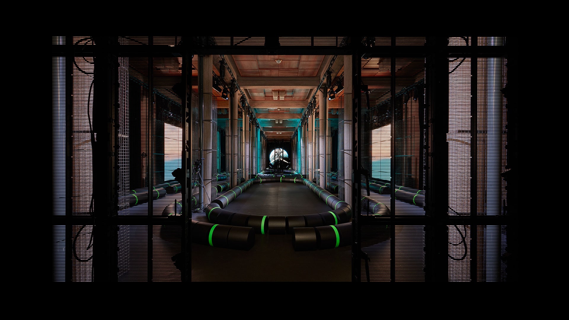 巴黎,2022年10月4日——围绕Miu Miu 2023春夏系列时装秀,AMO联手艺术家李爽合作打造,将多柱式建筑巴黎耶纳宫重塑为神秘而逼真的潜水艇电子基础设施——让时装秀再度化身沟通和转译之境——艺术的介入延伸至音乐人Eli Osheyack创作的音效,设想为一连串消失的音讯,音信未曾送达,因而无人知晓。