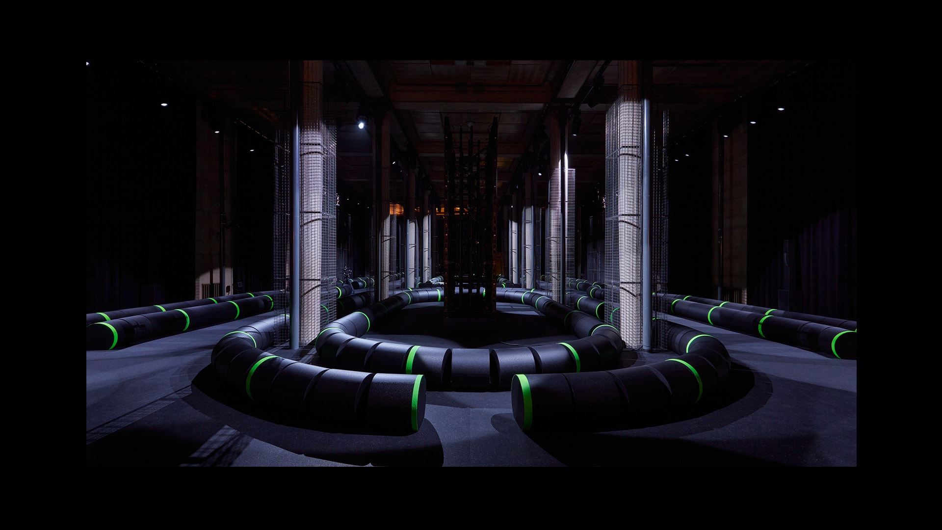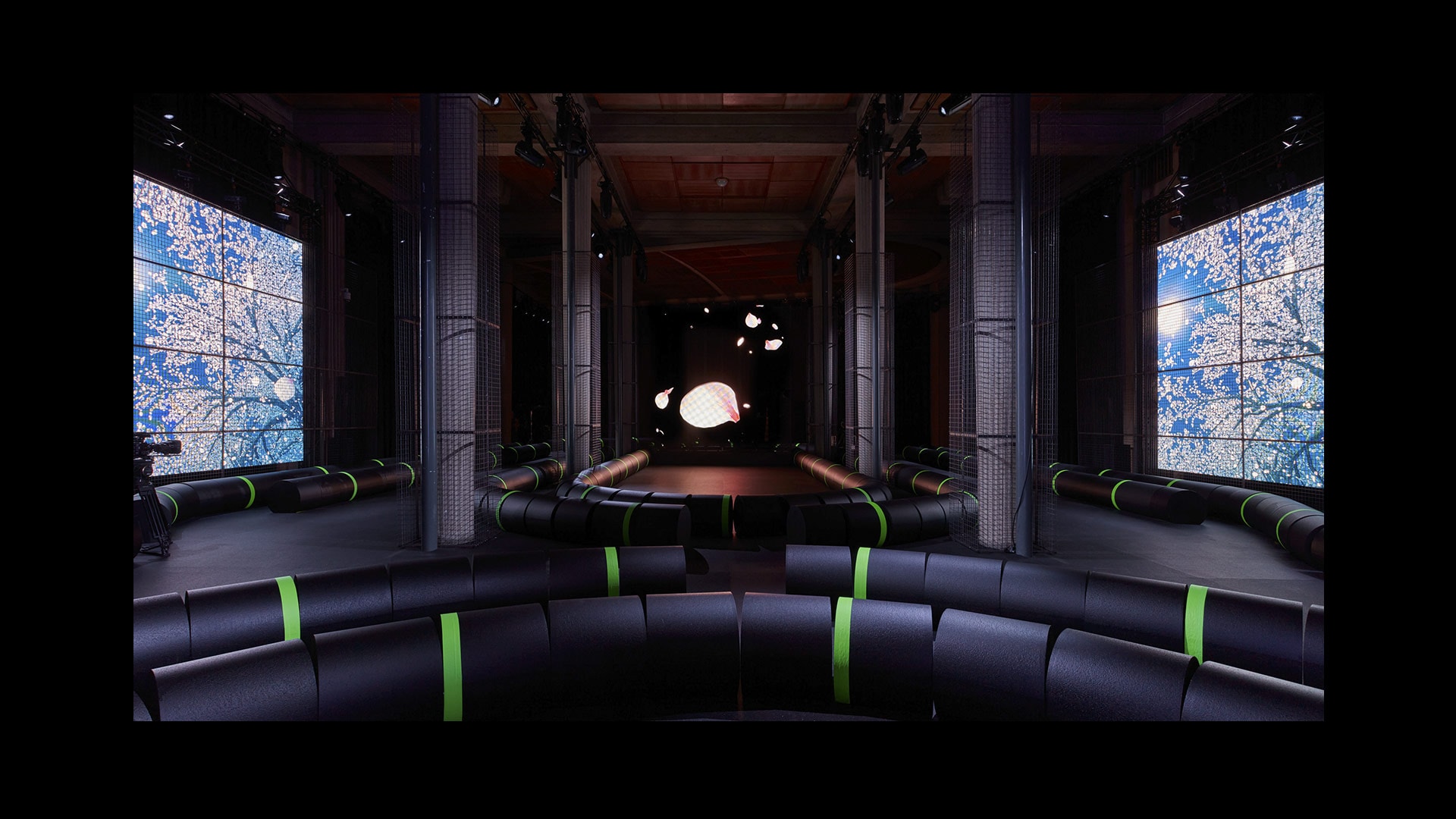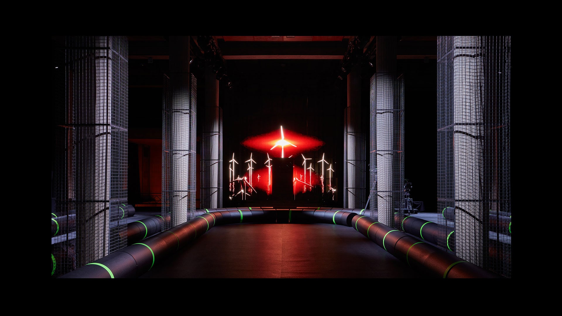 巴黎,2022年10月4日——围绕Miu Miu 2023春夏系列时装秀,AMO联手艺术家李爽合作打造,将多柱式建筑巴黎耶纳宫重塑为神秘而逼真的潜水艇电子基础设施——让时装秀再度化身沟通和转译之境——艺术的介入延伸至音乐人Eli Osheyack创作的音效,设想为一连串消失的音讯,音信未曾送达,因而无人知晓。