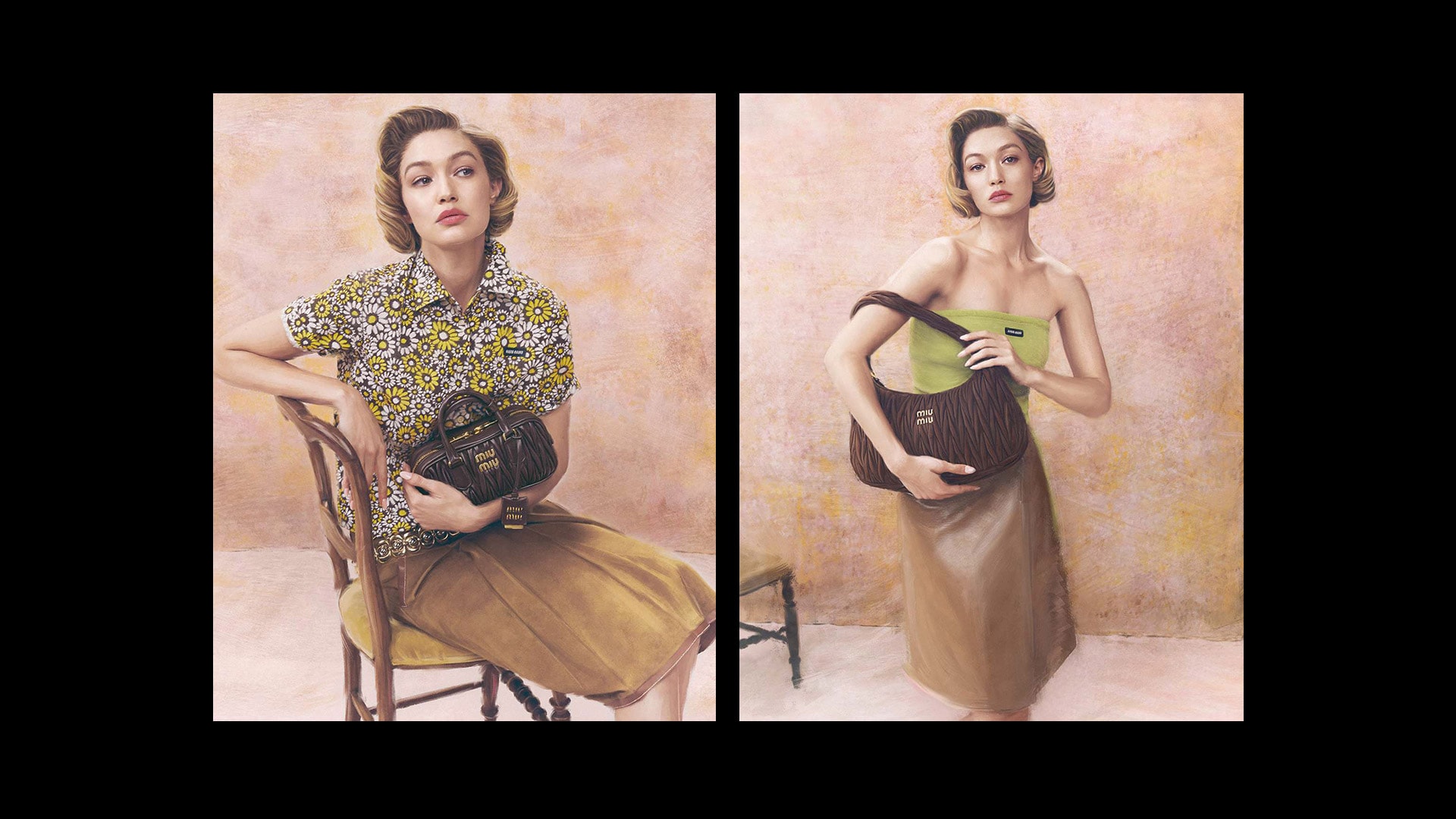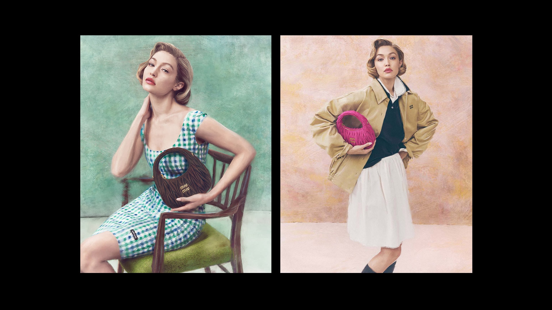 米兰,2025年3月27日 - 全新Miu Miu广告大片邀请Gigi Hadid出演,定格优美洒脱身姿,隽永意象的灵感源自20世纪经典上流社会肖像画,彰显品牌代表图案Matelassé及其使用者的非凡格调。此前两度广告大片的灵感均源于艺术家佳作,此次以广泛的艺术概念塑造了一种美学,一种对待时尚与美的态度。这是一种艺术美感,一种理念,而非直接效果。Steven Meisel掌镜拍摄的每个画面均以独特的数字技术手工“绘制”而成,色调的细微差别偶然且真实,切实呼应了笔触。作品向历史风格致敬,无论是照片写实主义还是非写实主义,始终存在耐人寻味的模糊性——一种不确定性的能量,意象介于绘画和摄影、当前和往昔的媒介之间。Wander与Arcadie手袋展示的Miu Miu Matelassé图案以全新绒面皮革诠释,构造温婉形象,质感如丝绒般柔滑细腻。肖像有三重呈现,以截然不同的手法诠释相同的普遍主题。
