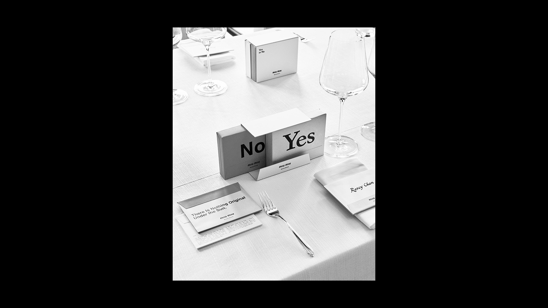 11月20日,Miu Miu Musings茶话沙龙本年度第三场,即终场于北京紫膳餐厅举行。来宾们享用了主厨May Chow打造的中式美食。沙龙由记者Penny Martin主持,她与特邀嘉宾Ann Friedman及Rosey Chan引出了沙龙的议题:团队认为,日光之下,并无新事。最终,来宾们对议题的表决结果是10票赞成、17票反对,这项议题被否决,Miu Miu Musings团队明确否认“日光之下,并无新事”。