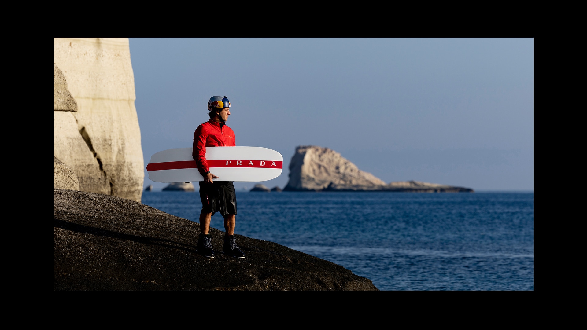 米兰,2022年5月31日——Prada Linea Rossa再度助力Red Bull极限运动员:水上运动健将Nikolas Plytas,在宛若月球地貌的希腊米洛斯岛,迎接全新挑战。