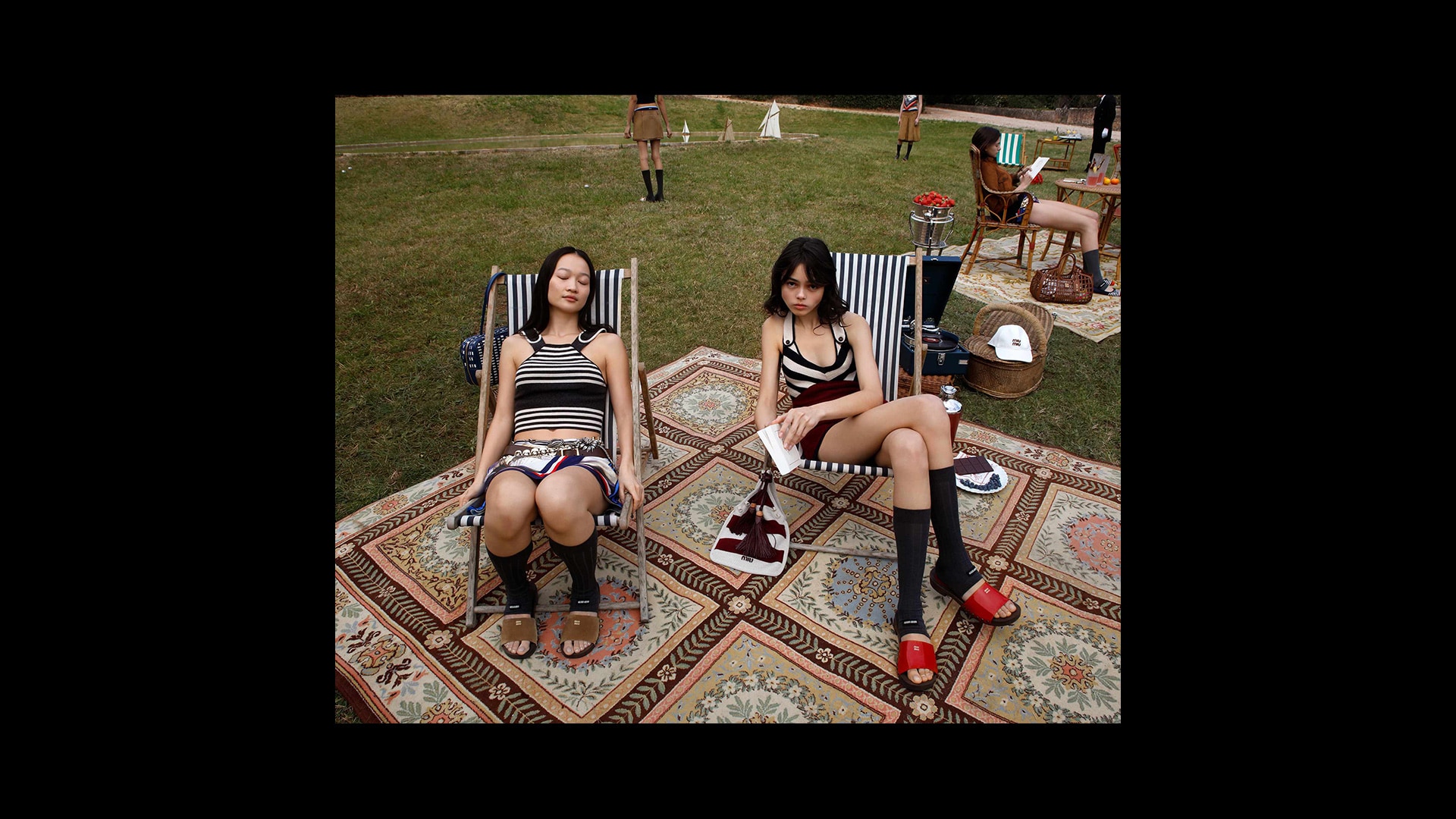 2025年, Catherine Martin领衔呈献全新Miu Miu Upcycled系列,她执导的短片开山之作《Grande Envie》以及Michella Bredahl拍摄的广告大片同步献映。该系列的美学风格通过Jacques Henri Lartigue于1920年代拍摄的照片生动塑造呈现。它把原本不同属一脉的东西融合在一起——内衣搭配条纹T恤,丹宁牛仔邂逅晚装和赛艇夹克。实用与华贵恒久并置。反差效果诠释精裁品格。