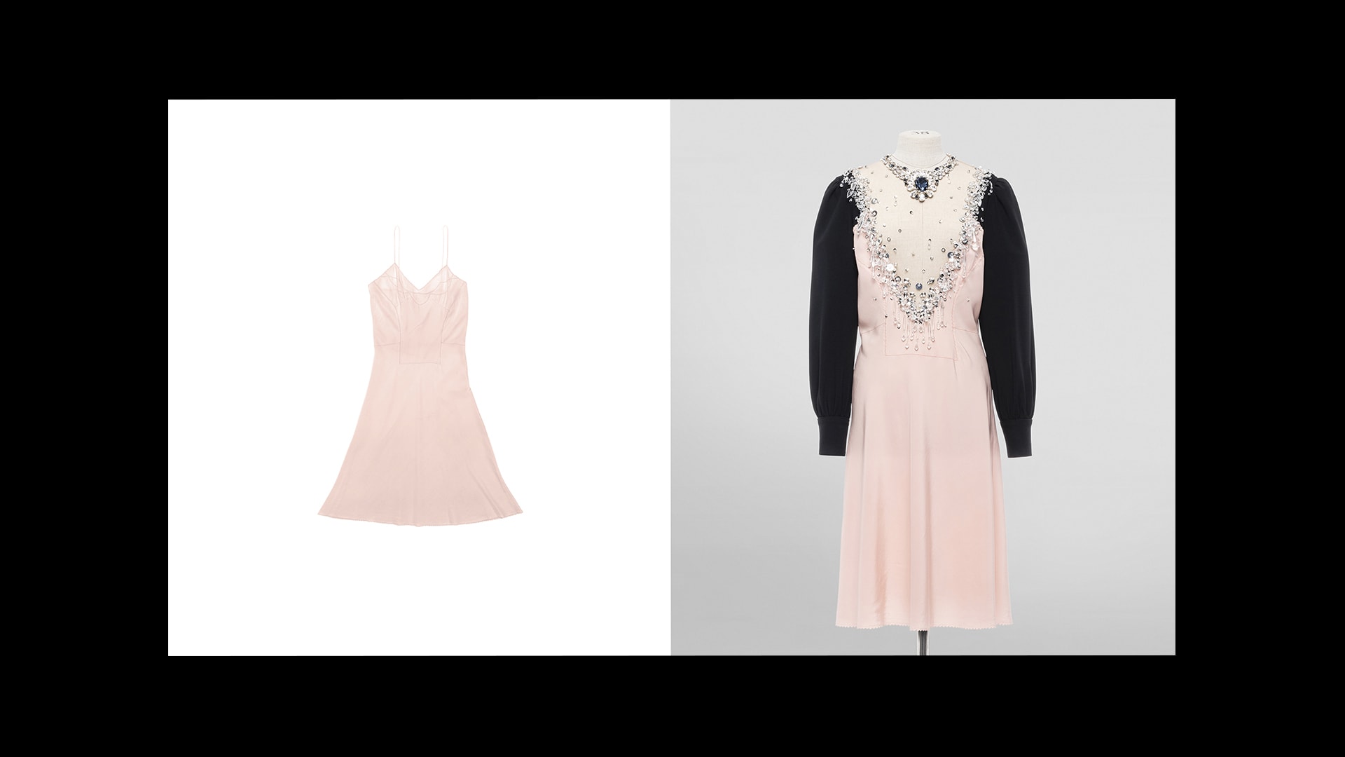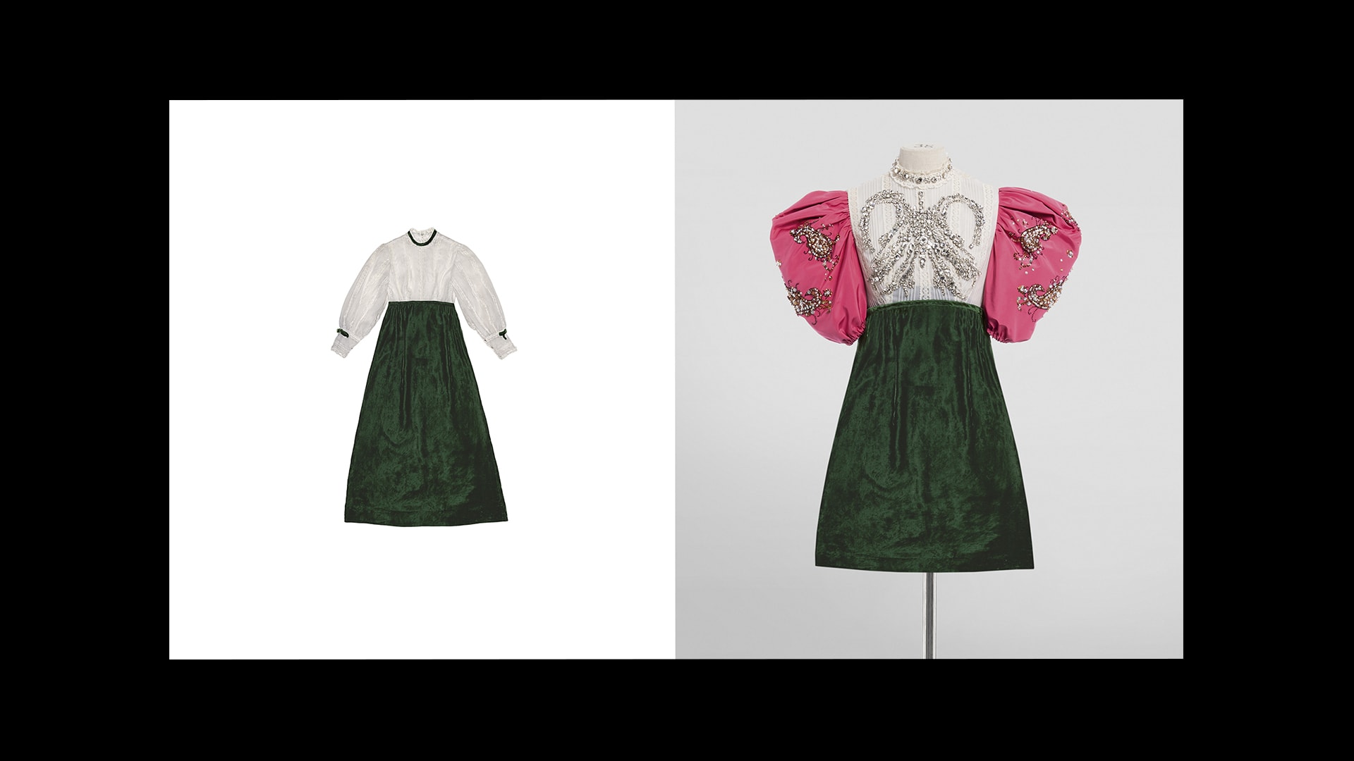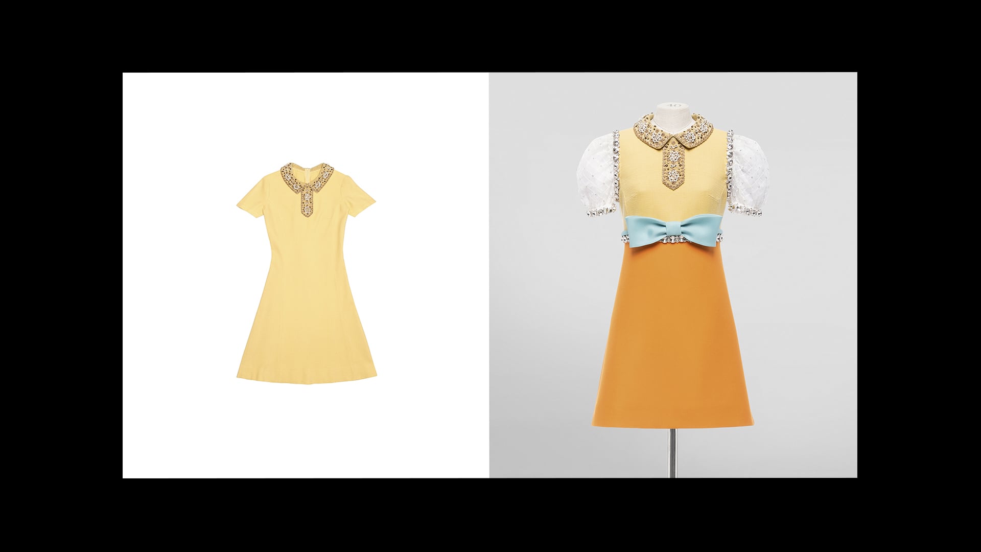 该项目于2020年12月启动,旨在根据Miu Miu的品牌美学重塑80款古董裙装礼服。
