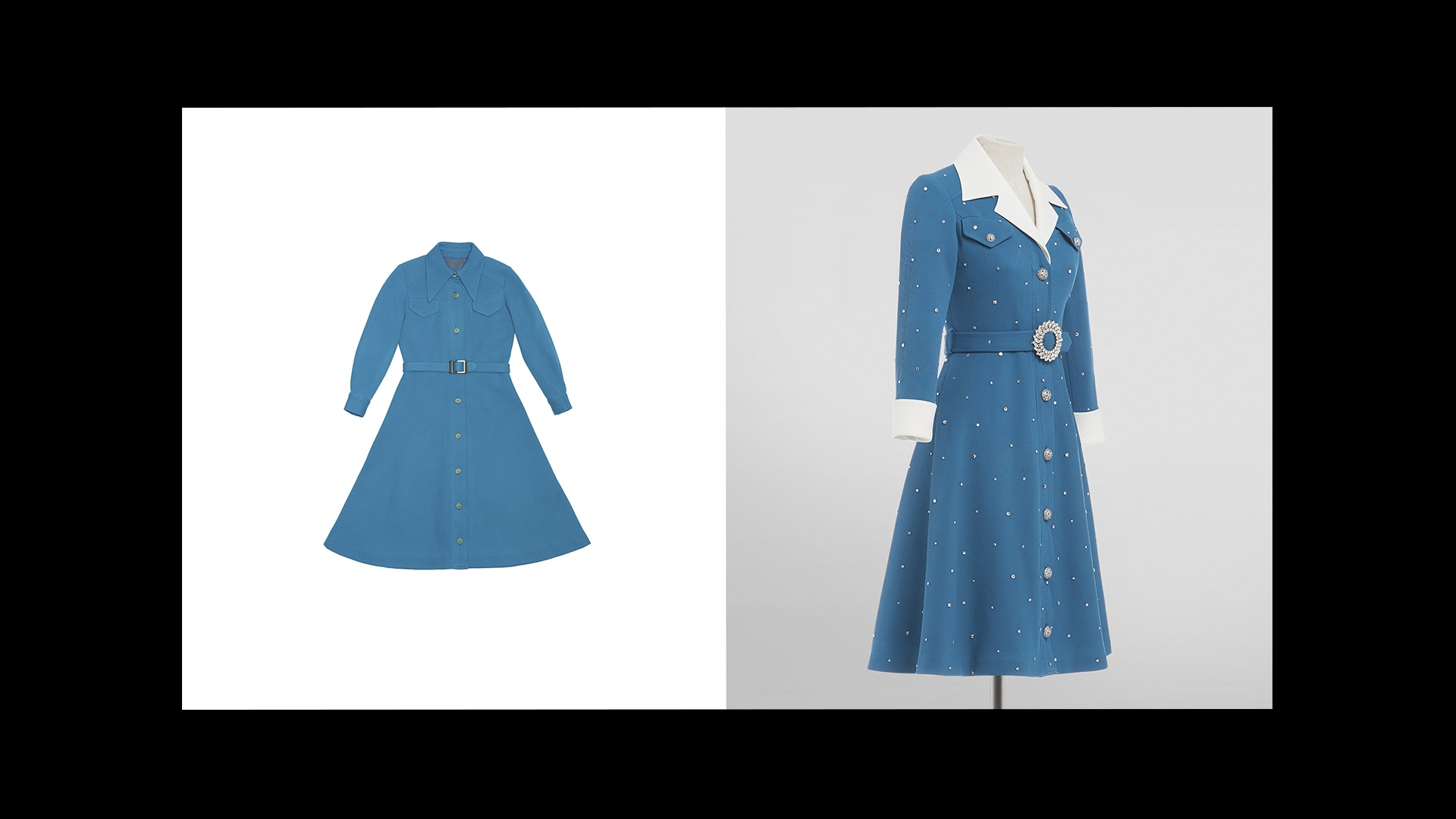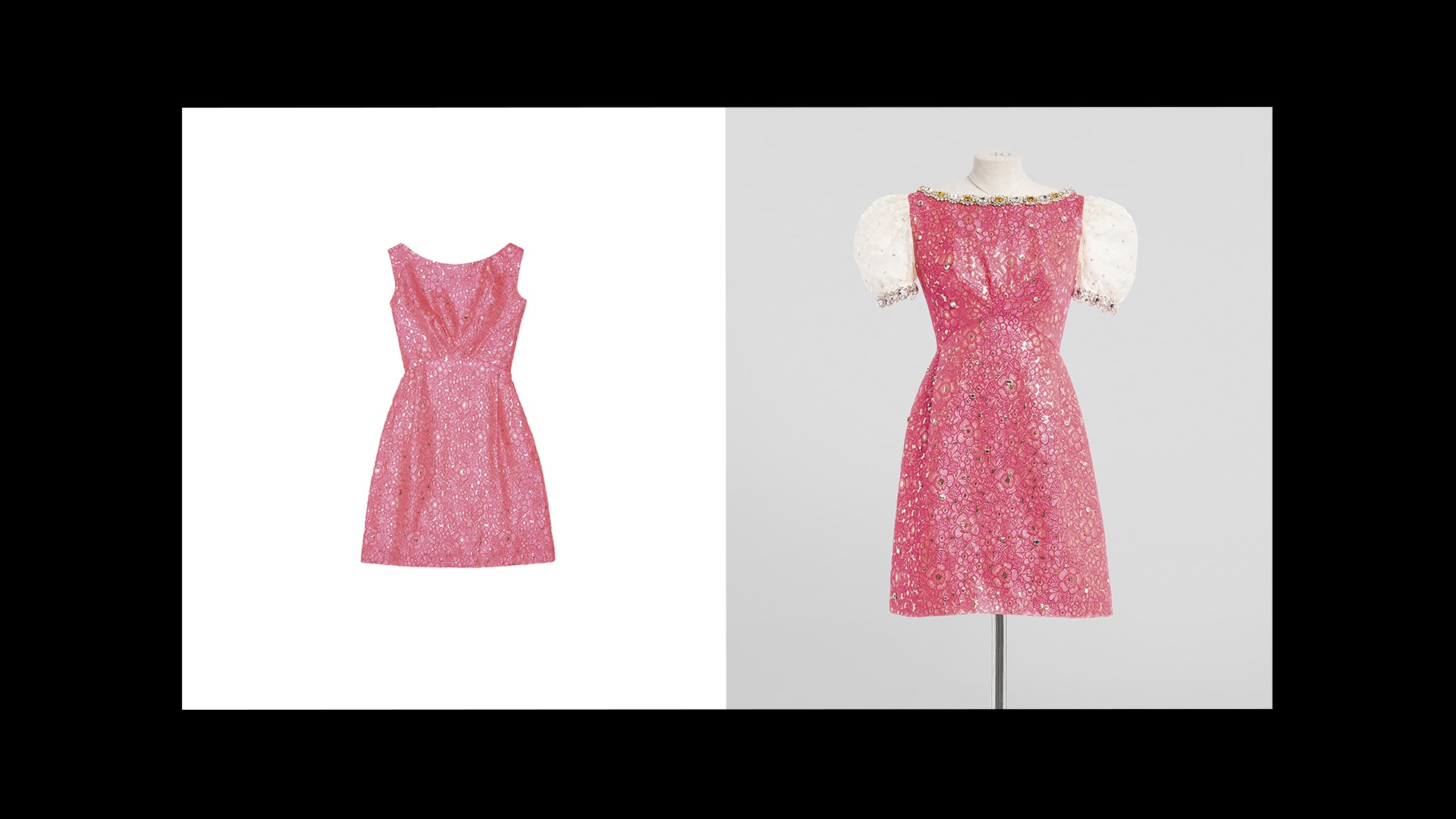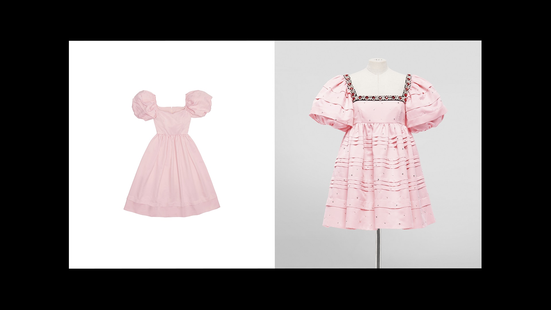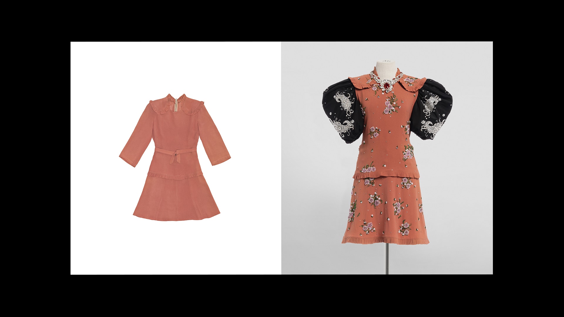 该项目于2020年12月启动,旨在根据Miu Miu的品牌美学重塑80款古董裙装礼服。
