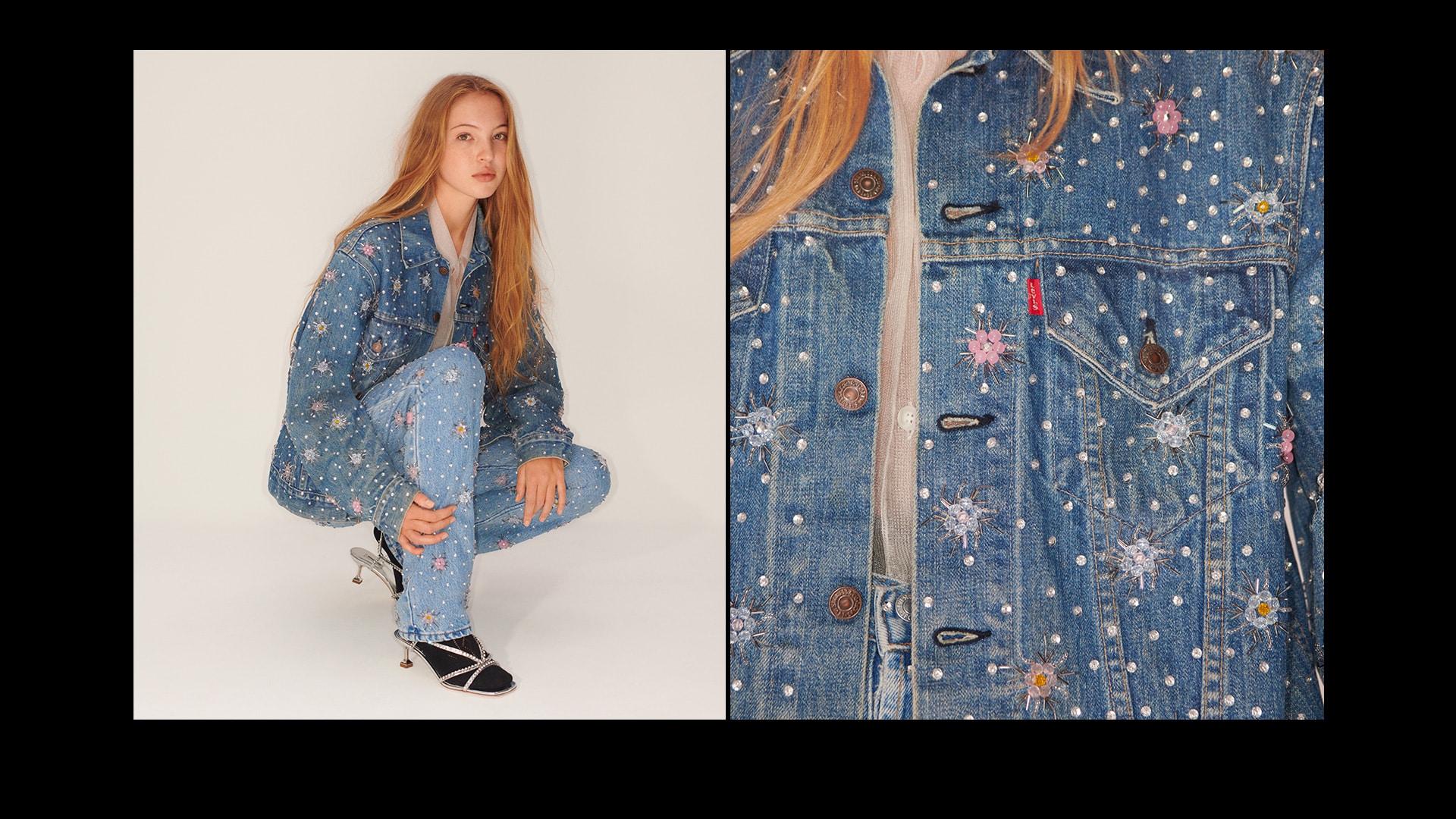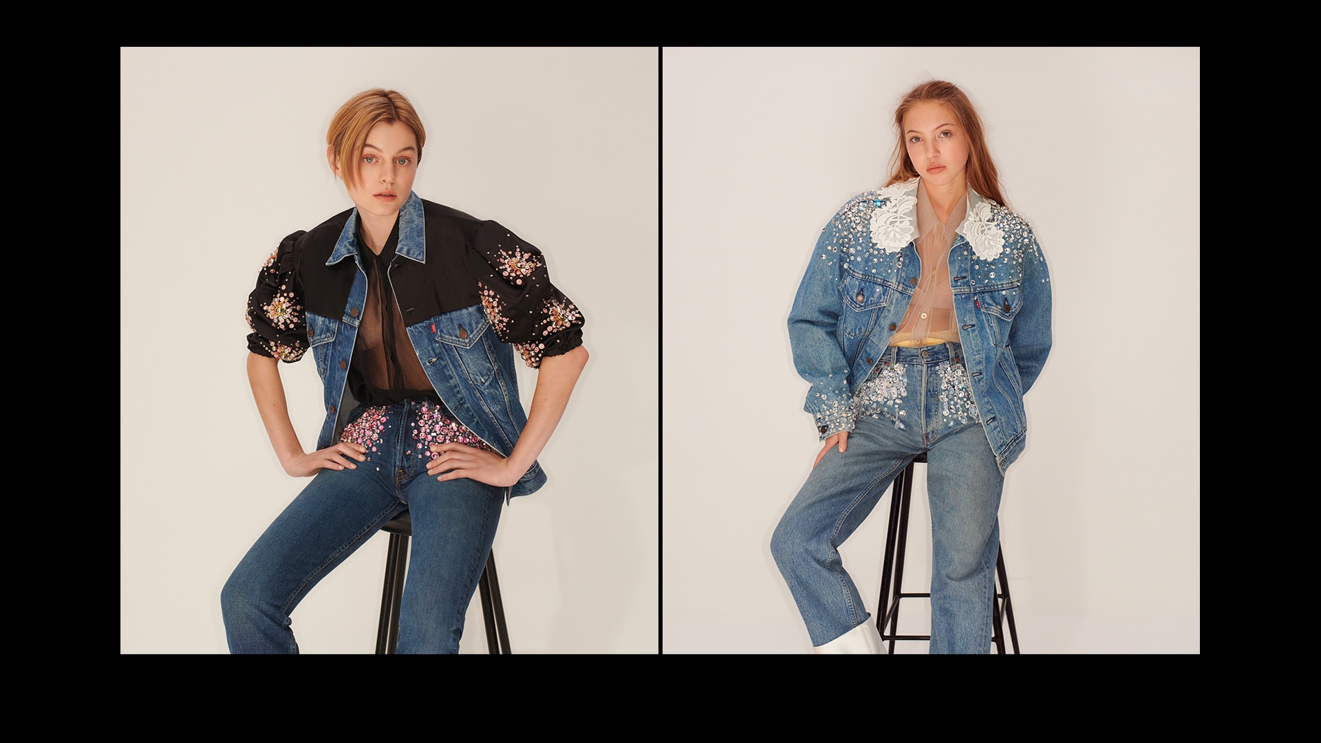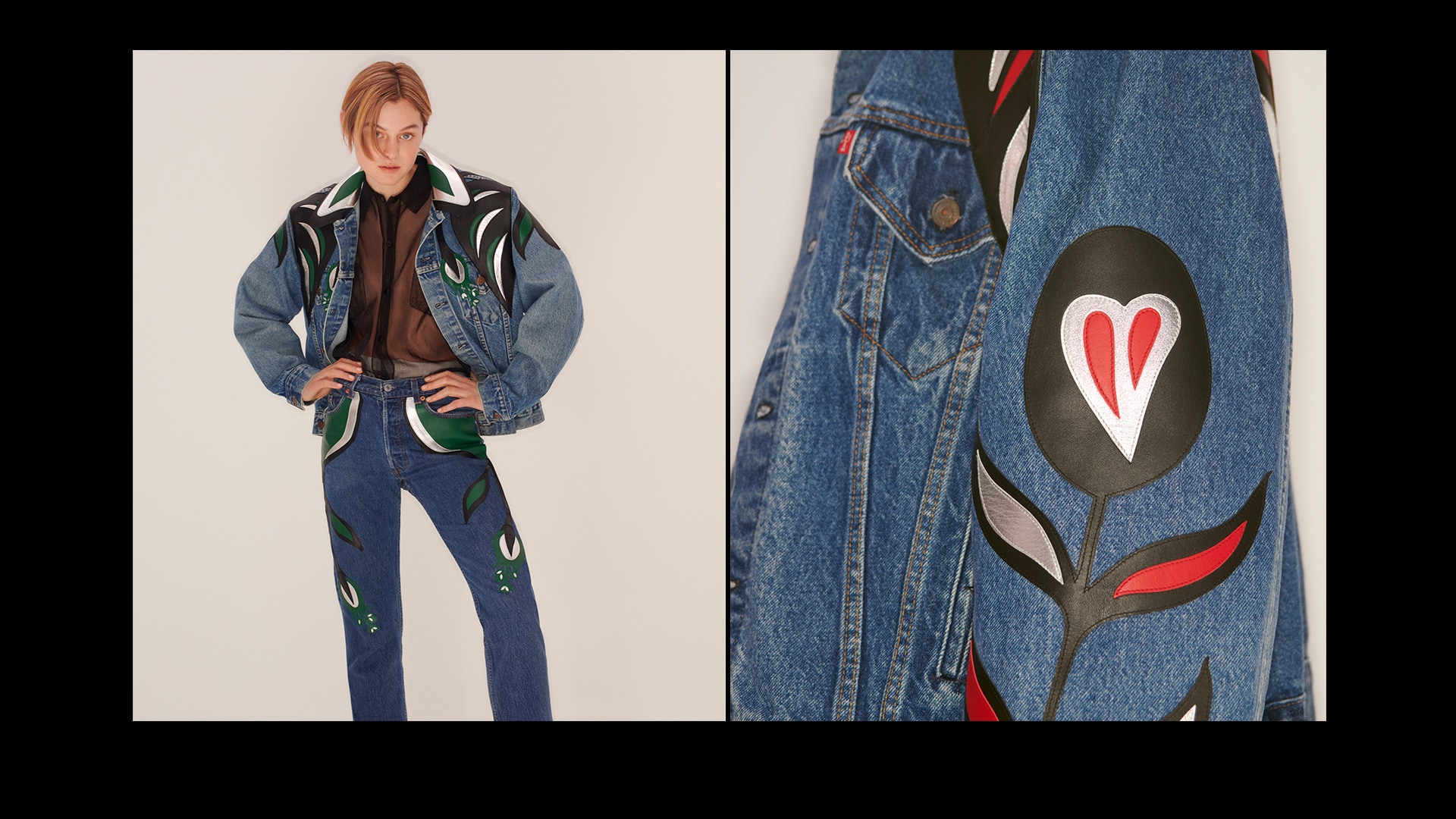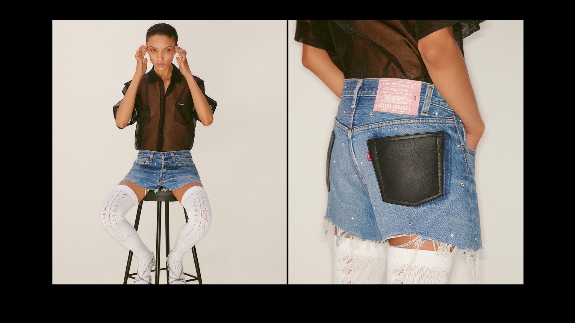 上世纪80年代至90年代的美式501®款男士牛仔裤及牛仔夹克被施以个性化定制,风格介于阳刚与柔美之间。为凸显此次合作,标志性的Levi's®标签以Miu Miu粉色重释,承载品牌徽标。印以Levi's®徽标的特别定制Miu Miu手袋成为整个系列的点睛之笔。